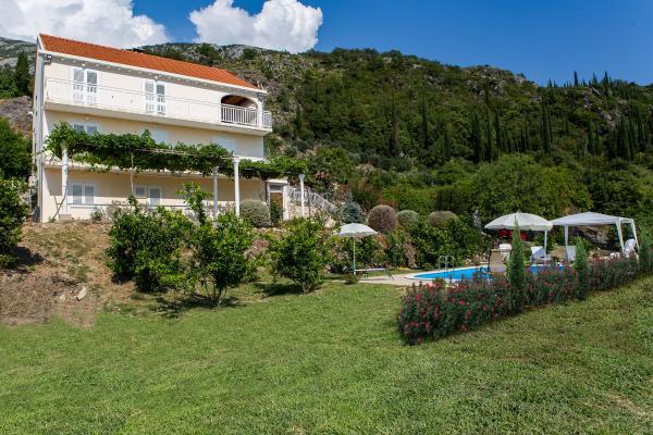 Villa boca de pozo situado en Konavle, a 32 km de Dubrovnik ya 16 del aeropuerto, cerca de la frontera con Montenegro. Se encuentra en el entorno tranquilo del jardín de 5000m2. Está rodeado de vegetación y manantiales de agua dulce que fluyen cerca de la villa. Es ideal para aquellos que buscan unas vacaciones tranquilas. Los huéspedes pueden utilizar un jardín con piscina, barbacoa y terrazas de los alrededores. Propietario ofrece visita panorámica libre de Konavle y lugares de inscripción. Ofrecemos a nuestros huéspedes un alojamiento de 220m2 que consta de 5 dormitorios, sala de estar, cocina, 3 baños, lavandería y sala de almacenamiento de equipaje y terraza interior y terrazas al aire libre.