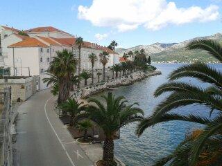 Este apartamento muy bien amueblado para max. 6 personas se encuentra a lo largo de la costa, con una hermosa vista del mar y el casco antiguo. Consta de dos dormitorios, sala de estar, cocina, comedor, dos baños, terrazas y balcones con vistas al jardín de flores. El apartamento tiene aire acondicionado y cuenta con todo el equipamiento necesario para una estancia confortable.