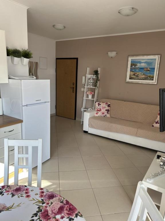 Moderno apartamento en un tranquilo edificio residencial en la tercera planta con preciosas vistas al mar. El apartamento cuenta con un dormitorio con cama doble, un sofá cama, una cocina totalmente equipada y una terraza con preciosas vistas al mar. El apartamento se encuentra a 50 m del mar y de la playa.