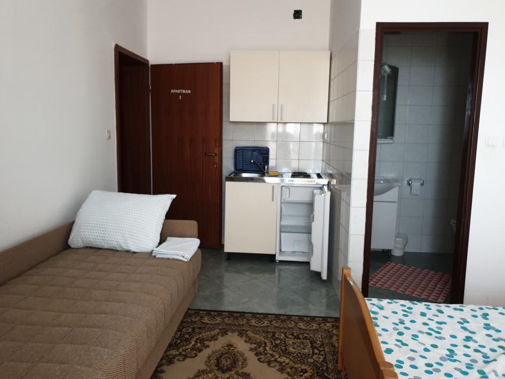 Apartamento totalmente amueblado y moderno en una zona tranquila de Kozino, a 5 km de Zadar. Zadar, a 30 metros del mar Costa de cuero Ponga puntice 9 para 2 2 personas. Magda rooms, estudio para 2 2 personas con baño y cocina.
