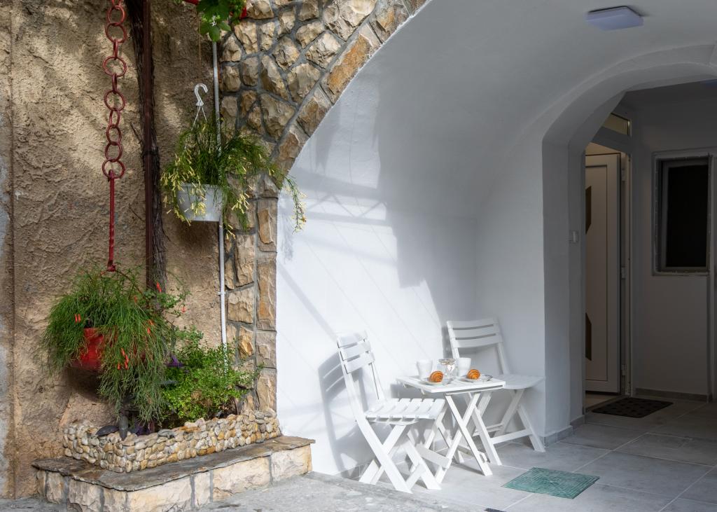 El apartamento está situado en el casco antiguo, en pleno centro de Krk. La playa principal se encuentra a 250 metros. El centro de la ciudad, la plaza principal y el paseo marítimo están a 100 metros. Los monumentos históricos más importantes, la Catedral de Krk y el Castillo de Frankopan, se encuentran muy cerca, y desde la entrada se divisa la catedral. Durante su estancia, los huéspedes tienen acceso a todos los servicios sin necesidad de coche. El aparcamiento es gratuito y está a 250 metros del apartamento.