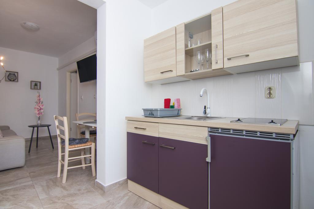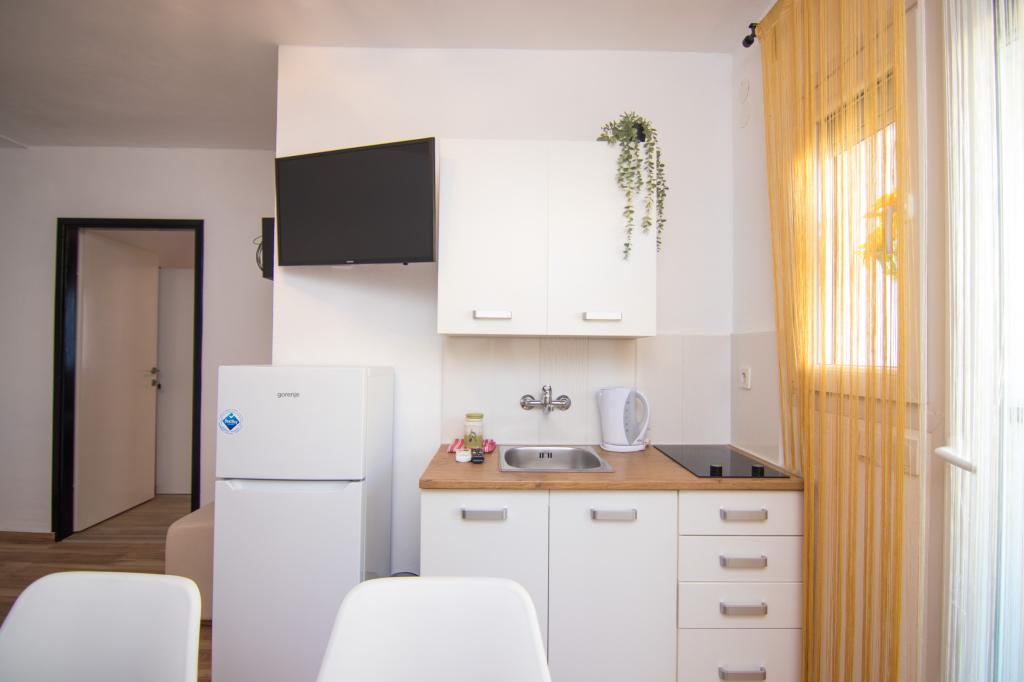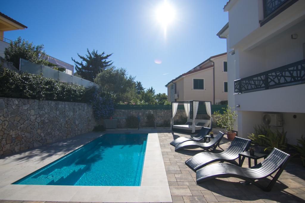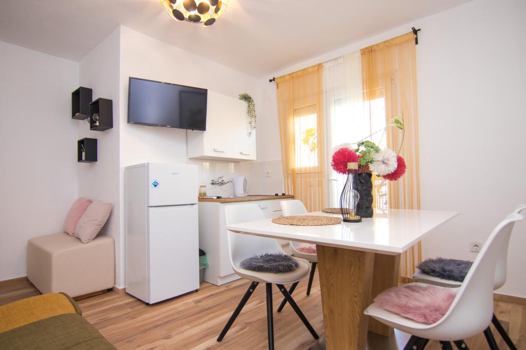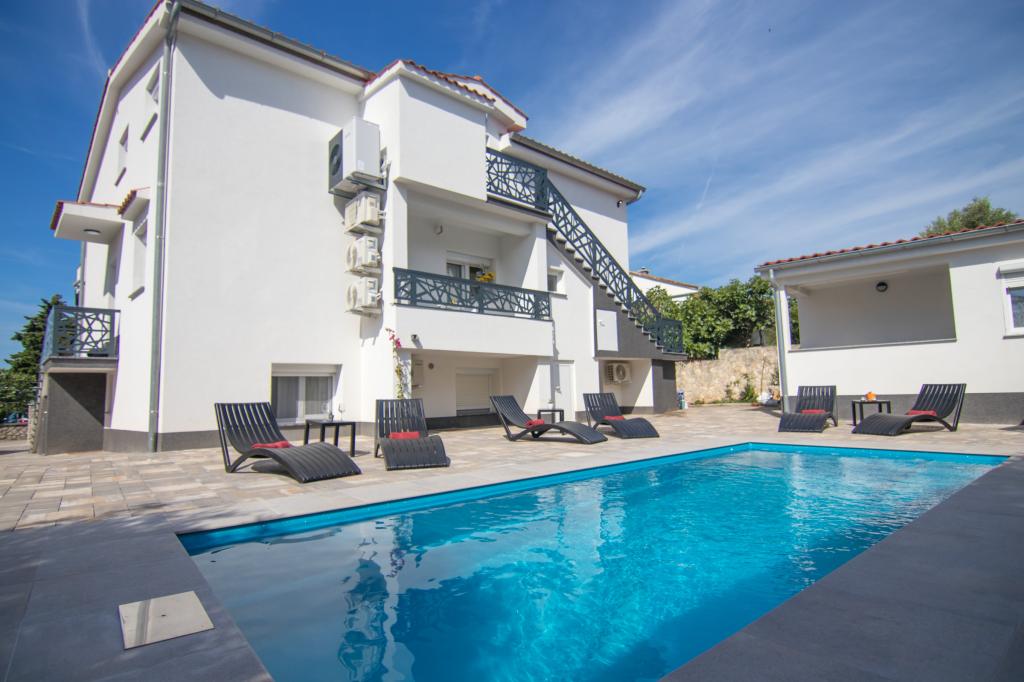 Esta hermosa propiedad se encuentra en una ubicación excelente, a solo 400 metros de la playa y a unos 500 metros de la entrada al casco antiguo de Krka, lo que la convierte en la opción ideal para quienes desean disfrutar de la combinación de mar, historia y ambiente urbano. La propiedad ofrece una fantástica piscina climatizada con solárium, ideal para relajarse y disfrutar del día. Algunas unidades ofrecen hermosas vistas al mar y amplias terrazas, mientras que otras tienen balcones o se encuentran junto a la piscina, lo que las hace perfectas para quienes desean estar cerca de servicios sociales. Todas las unidades cuentan con aparcamiento privado, canales por satélite, internet gratuito, hervidor eléctrico y cafetera de filtro, lo que garantiza una estancia cómoda y práctica.