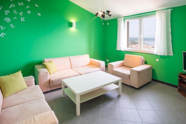 El apartamento está situado en la primera planta, situado en un lugar atractivo tranquilo, tiene una terraza cubierta con una hermosa vista del mar y el casco antiguo. A sólo 10 min. caminar hasta el centro y playas cercanas para todos los gustos. Estaremos encantados de ayudarle a asesorar a dónde ir en el viaje, cena o salir. Esperamos su visita!