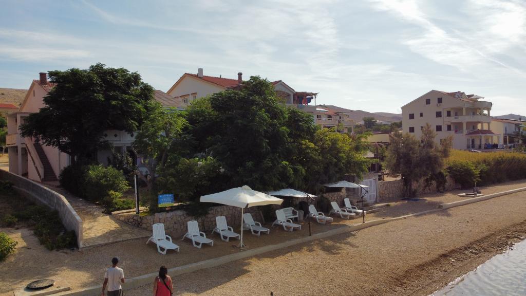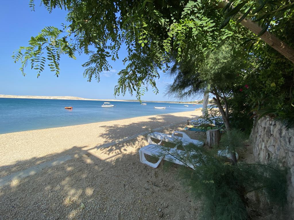 Los apartamentos Frane están situados en el pequeño pueblo de Vidalići en la isla de Pag, justo al lado del mar. Los apartamentos tienen una ubicación ideal a solo unos pasos de nuestra playa de arena, que se encuentra a solo 10 metros delante de la casa. Hay sombra natural sobre la playa, como se puede ver en las fotos. Los apartamentos son adecuados para unas vacaciones en familia, mientras que la playa y el jardín con barbacoa están a solo unos pasos.