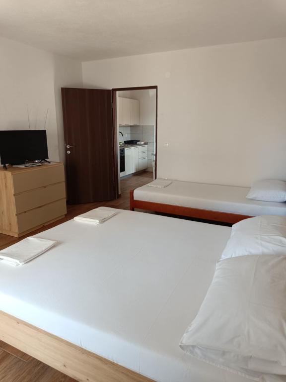 Apartamentos Leonard Estamos situados en la pequeña y tranquila ciudad de Kustići. Ofrecemos apartamentos nuevos y completamente equipados con aparcamiento. Cada apartamento dispone de aire acondicionado, Wi-Fi, ropa de cama, TV, cocina totalmente equipada y terraza. La playa está a 20 metros y en la zona de los apartamentos hay tiendas, restaurantes y una panadería. ¡La ciudad de Novalja está a 6 km! ¡También disponemos de amarres para barcos a 20 metros del apartamento!
