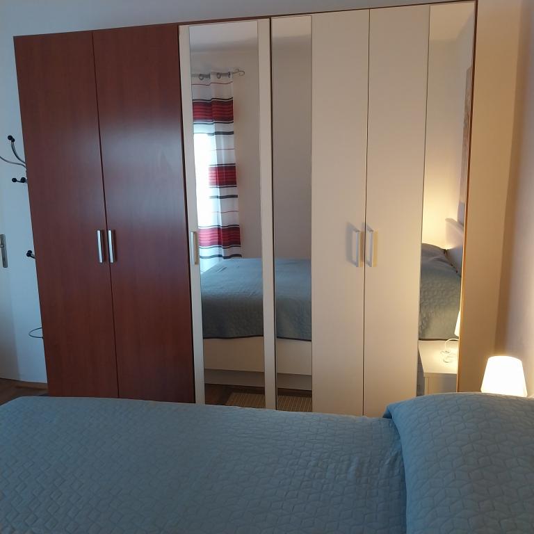 Apartamentos Mirko se encuentran en Ljubac -Zadar El Norte Dalmacia. Los apartamentos están situados en el lugar ideal frente al mar para relajarse en la terraza a la sombra de las vides. La playa es de arena, ideal para los niños. 17 km de la ciudad de Zadar Ljubco ubicados único en el mundo por el órgano de mar. A unos 25 km de distancia se encuentra el Parque Nacional, ya unos 35 km de Lagos de Plitvice.