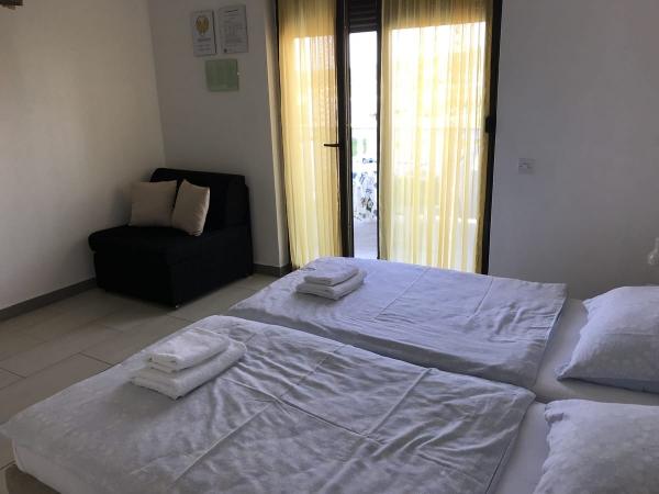 Los apartamentos Pavlečić se encuentran en Lopar, en la isla de Rab. Los apartamentos constan de 6 apartamentos independientes. 4 apartamentos son para 3 personas y 2 apartamentos son para 4 personas. Cada apartamento tiene entrada independiente, cocina, baño, aseo con ducha, 1 o 2 dormitorios, TV vía satélite, terraza con mesa y sillas. En la planta baja hay una gran terraza con mesas y sillas y una barbacoa que pueden utilizar todos los huéspedes. La distancia de la playa es de sólo 20 m. La playa es ideal para niños pequeños debido a su mar poco profundo y su playa de arena. Tiendas, restaurantes y oficina de correos se encuentran a 400 m.