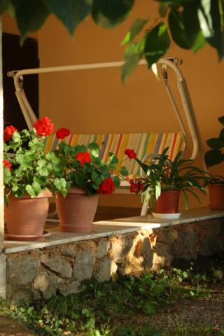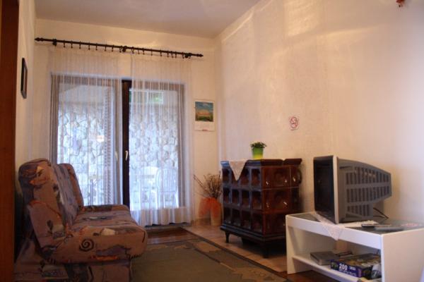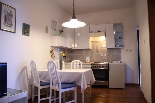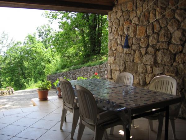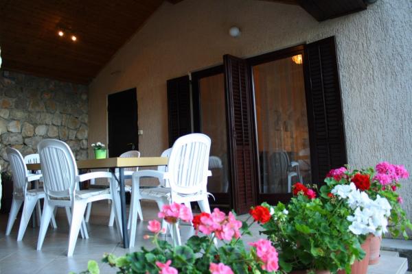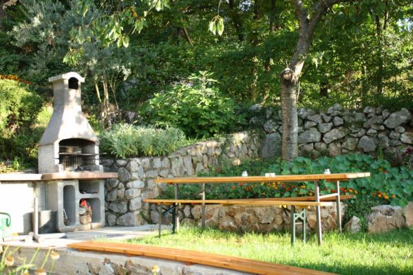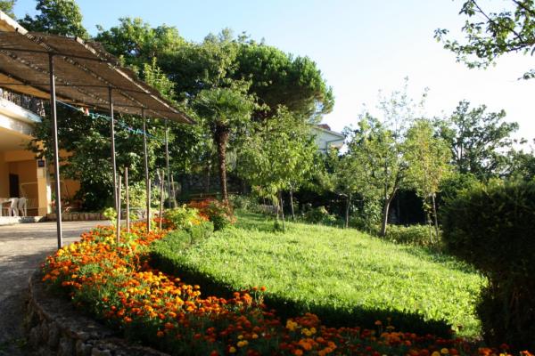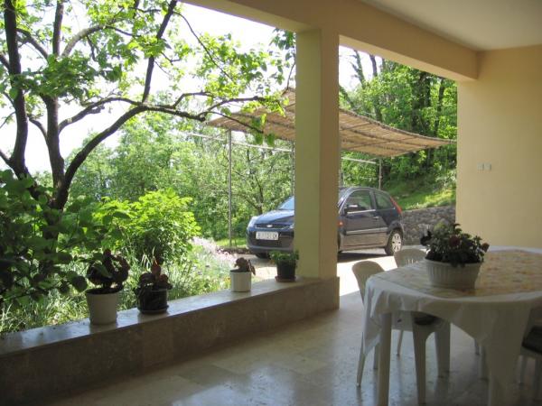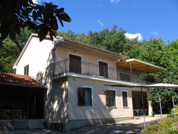 Casa con 2 apartamentos. Por encima de la ciudad Lovran, 2,5 km del centro de Lovran, en una pendiente, junto al bosque, en verde. Comunitario: jardín - flores y árboles, huerto. Barbacoa. Aparcamiento junto a la casa.