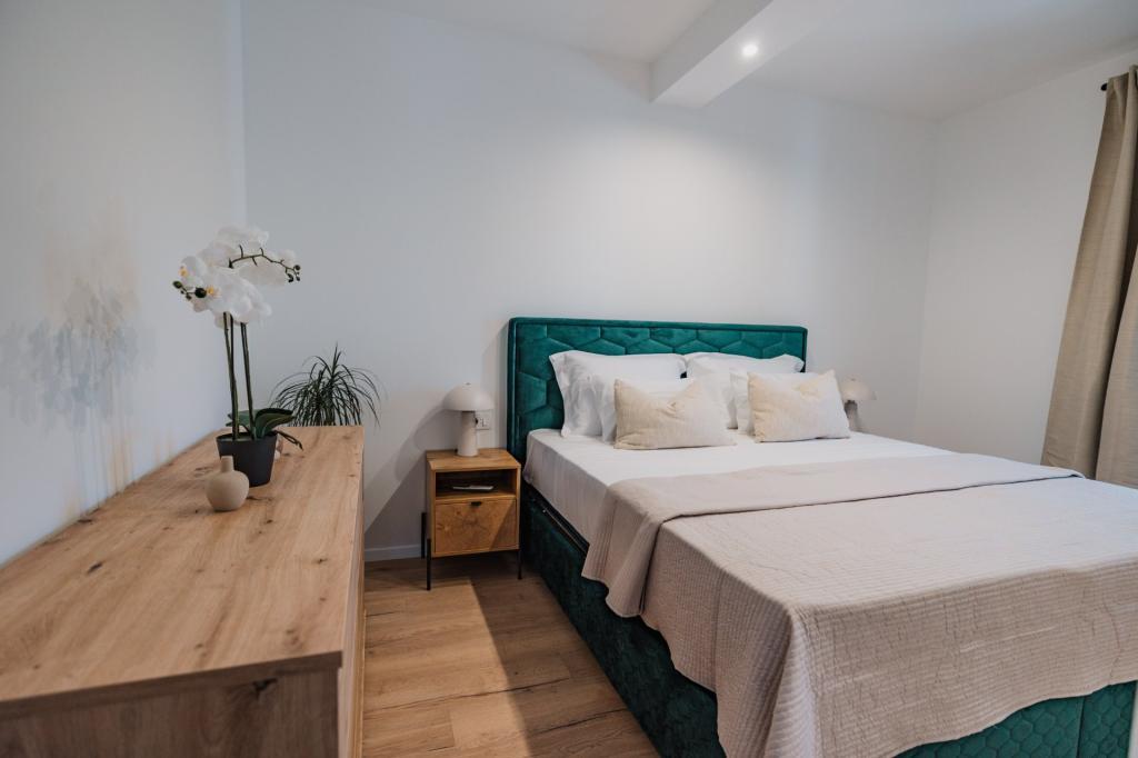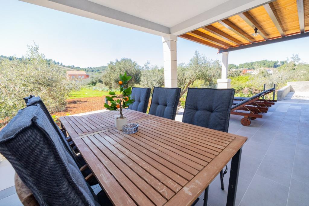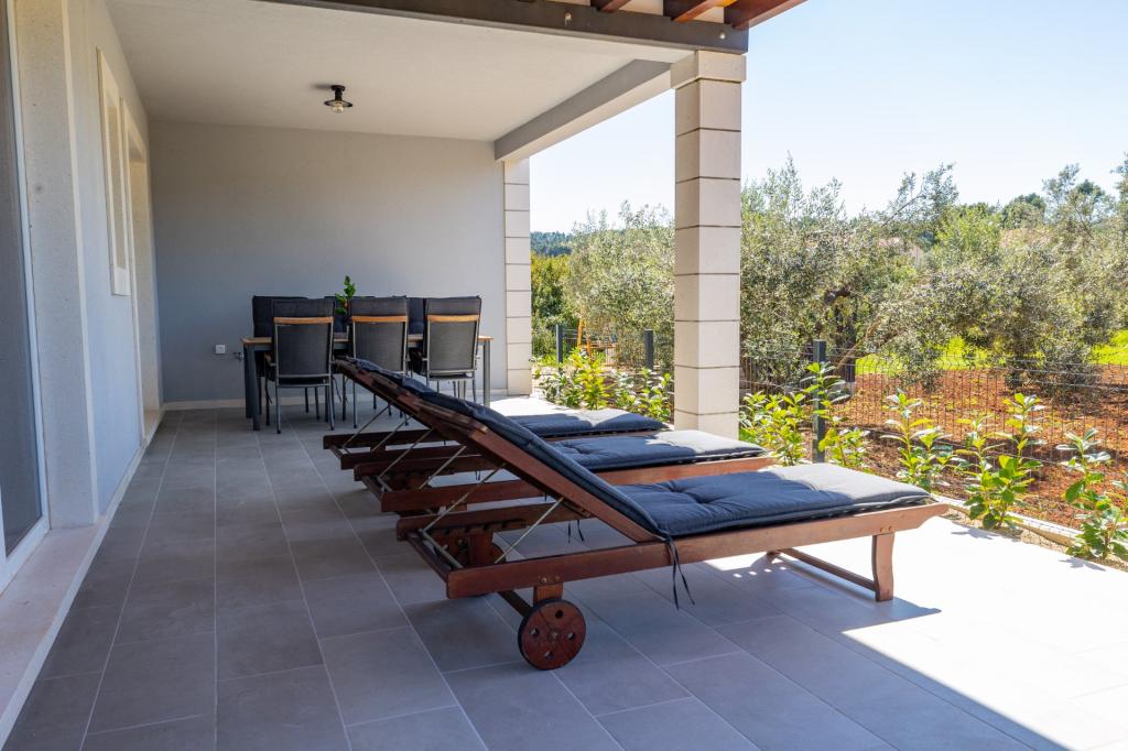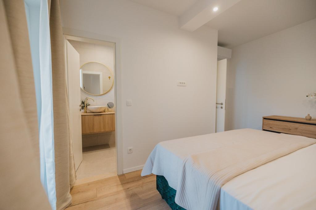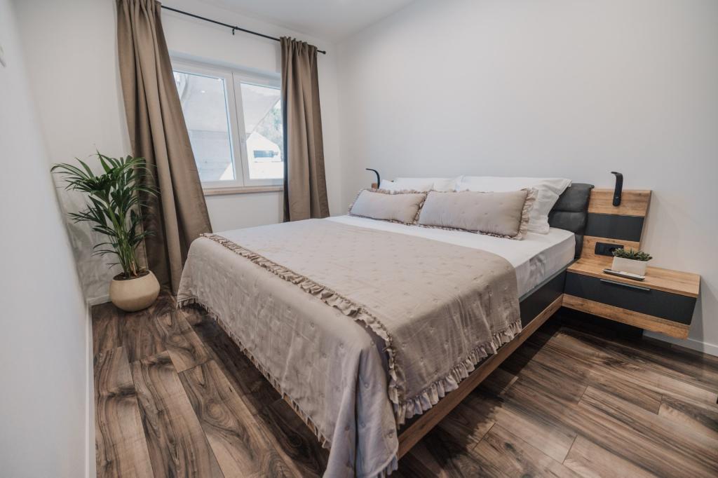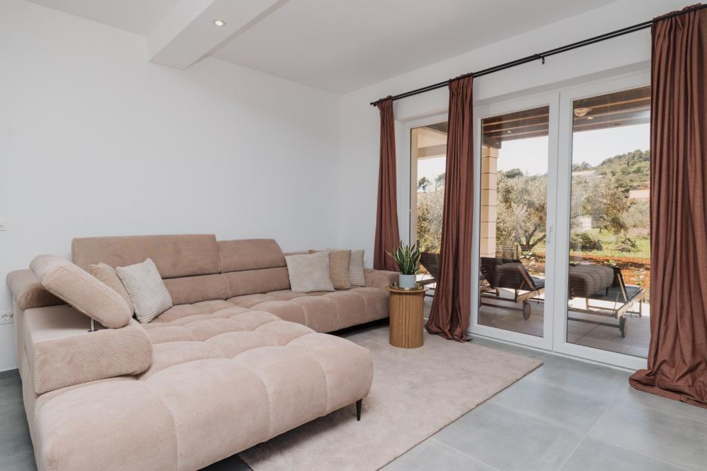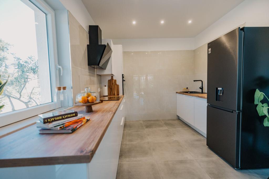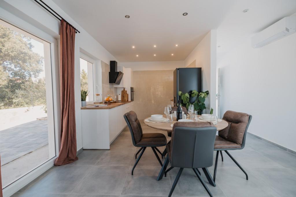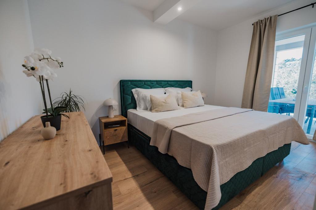 Se alquila un apartamento recién reformado y con equipamiento moderno en Lumbarda, en la isla de Korčula, ubicado en un auténtico entorno de un extenso olivar que garantiza a los huéspedes absoluta intimidad y tranquilidad. El apartamento cuenta con 75 metros cuadrados de espacio interior, con dos dormitorios y dos aseos. Se ha puesto especial énfasis en el exterior, que incluye una gran terraza de 35 metros cuadrados y un jardín de 100 metros cuadrados, ideal para relajarse en soledad. El interior está totalmente equipado para una estancia confortable de cuatro personas, incluyendo lavavajillas en la cocina, lavadora en el baño, MaxTV e internet 5G de alta velocidad. Para familias con niños pequeños, se puede solicitar una cuna. La ubicación ofrece una combinación perfecta de privacidad y proximidad a todos los servicios: la primera cala para nadar está a solo 200 metros, el centro de la ciudad a 800 metros y las famosas playas de arena a unos 2 kilómetros. Los huéspedes disponen de aparcamiento privado en el edificio.