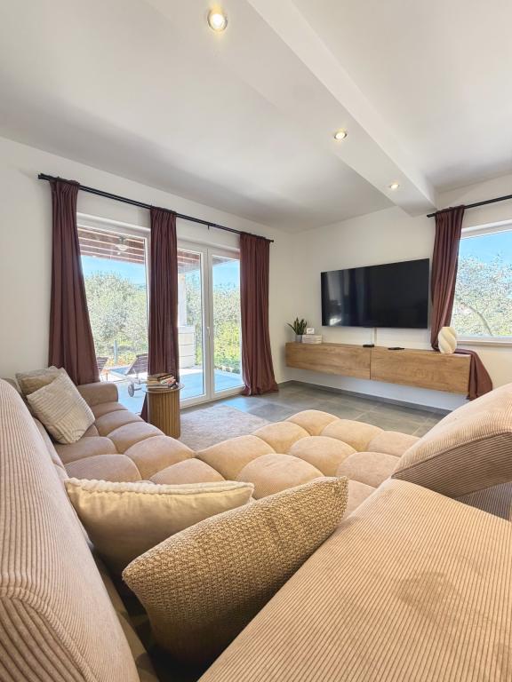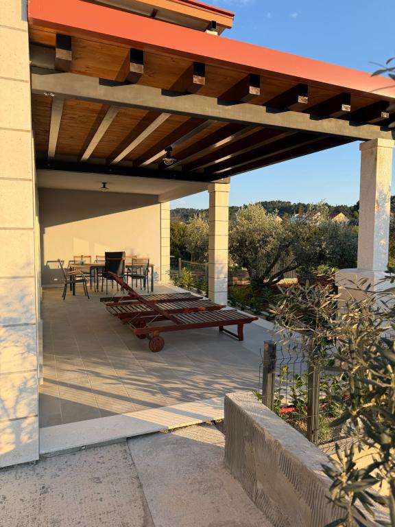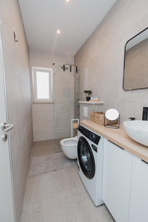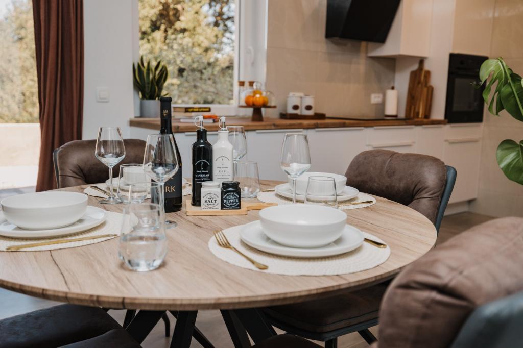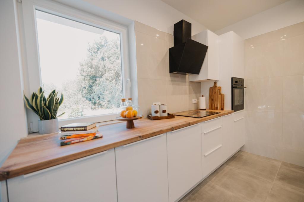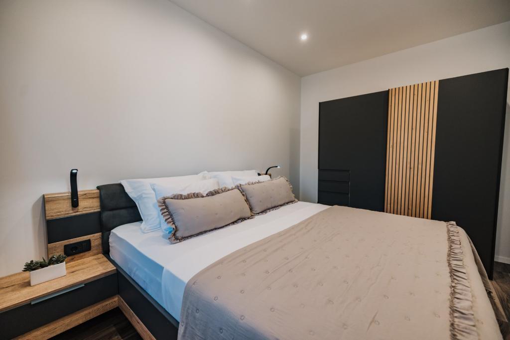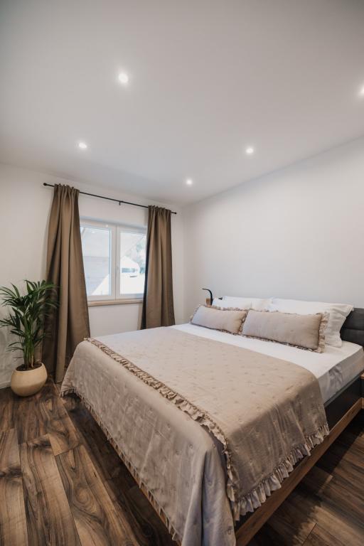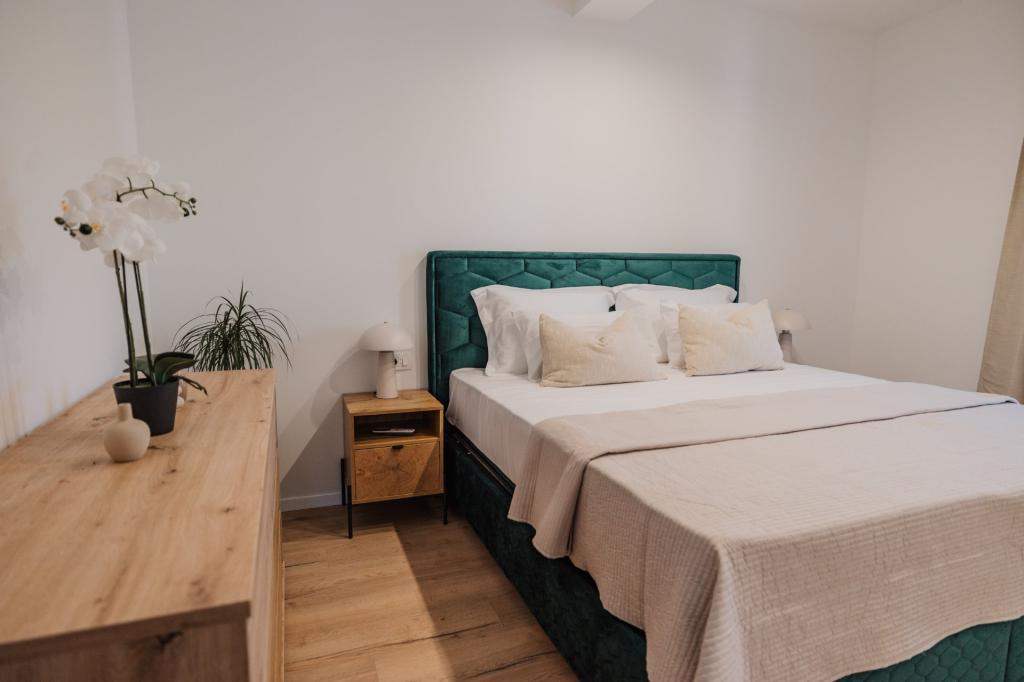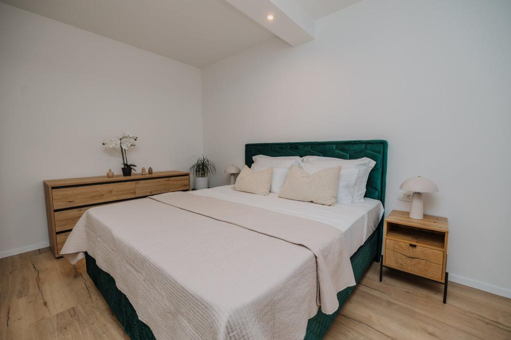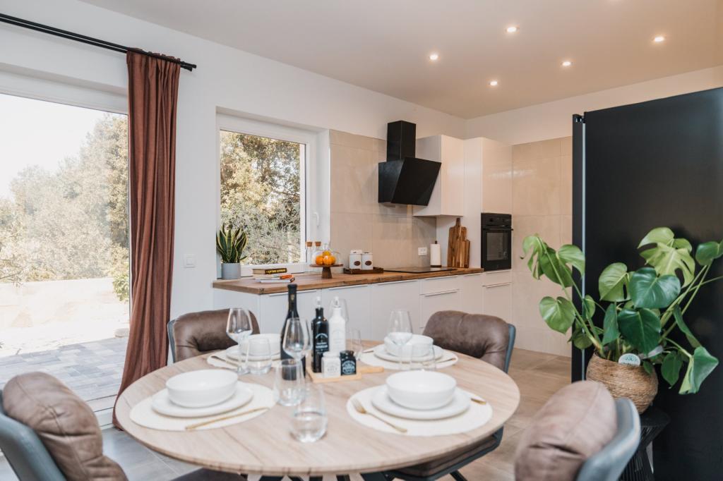 Se alquila un apartamento recién reformado y con equipamiento moderno en Lumbarda, en la isla de Korčula, ubicado en un auténtico entorno de un extenso olivar que garantiza a los huéspedes absoluta intimidad y tranquilidad. El apartamento cuenta con 75 metros cuadrados de espacio interior, con dos dormitorios y dos aseos. Se ha puesto especial énfasis en el exterior, que incluye una gran terraza de 35 metros cuadrados y un jardín de 100 metros cuadrados, ideal para relajarse en soledad. El interior está totalmente equipado para una estancia confortable de cuatro personas, incluyendo lavavajillas en la cocina, lavadora en el baño, MaxTV e internet 5G de alta velocidad. Para familias con niños pequeños, se puede solicitar una cuna. La ubicación ofrece una combinación perfecta de privacidad y proximidad a todos los servicios: la primera cala para nadar está a solo 200 metros, el centro de la ciudad a 800 metros y las famosas playas de arena a unos 2 kilómetros. Los huéspedes disponen de aparcamiento privado en el edificio.