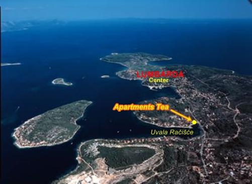 El TEA apartamentos están situados en una tranquila bahía en Lumbarda en la isla. Están ubicados en la primera fila al mar, y ofrecen una hermosa vista de la bahía. Rodeado de espacios verdes. La instalación se encuentra a 10 minutos a pie del centro, 5-10 minutos de la playa rocosa y 30 minutos a pie de la playa.