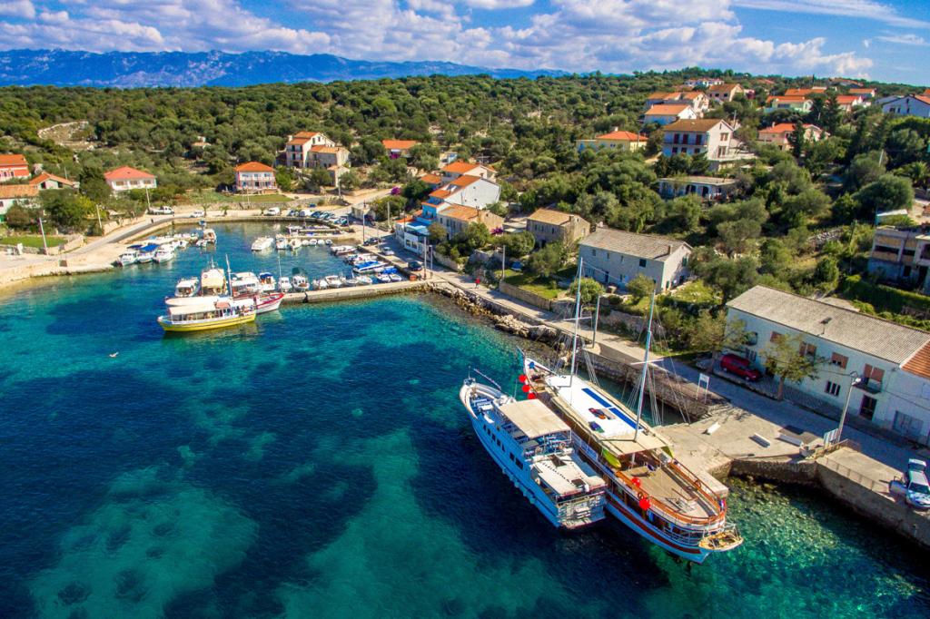 Posibilidad de dos amarres para embarcaciones de hasta 5 m y alquiler de embarcaciones para excursiones de un día a las islas vecinas de Rab, Cres y Lošinj. Carril bici a Novalja.