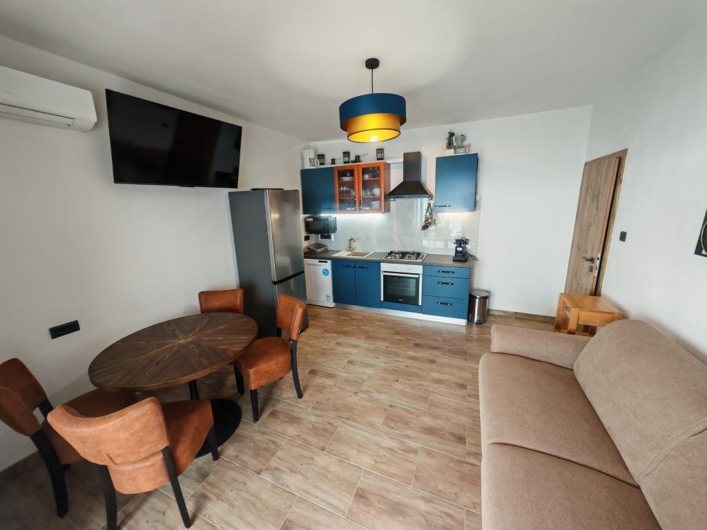 Los apartamentos están situados junto al mar con vistas a las islas de Cres y Lošinj, ideales para unas vacaciones tranquilas y relajantes sin ruido ni bullicio. Están completamente equipados. El centro de la ciudad está a solo 300 metros, donde encontrará una tienda, varios restaurantes, una cafetería, una frutería y un cajero automático. A 200 metros hay una playa de arena para niños. Frente a la casa hay un pequeño oasis verde con un frondoso huerto donde los huéspedes pueden disfrutar de sus propias comidas. Los apartamentos disponen de aparcamiento propio, una terraza con barbacoa al aire libre en la planta baja que puede utilizar, y si desea algo más, los anfitriones pueden organizar su propio chef. No se permite hacer ruido antes de las 9:00 ni después de las 23:00. Ubicada en la zona norte de la isla de Pag, rica en olivos milenarios, Lun es una zona única en esta parte del Mediterráneo. Más de 80.000 olivos se extienden sobre una superficie de 400 hectáreas. Lun se encuentra cerca de Novalja, donde se encuentran las islas de Rab, Lošinj, Cres, Silba y cinco parques nacionales. Excursión diaria con conexión en barco a Rab.