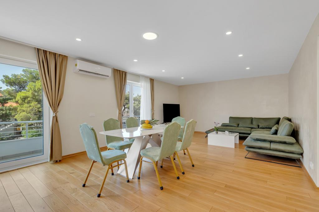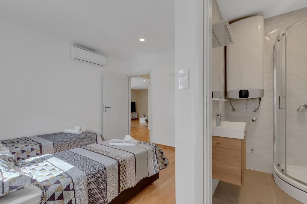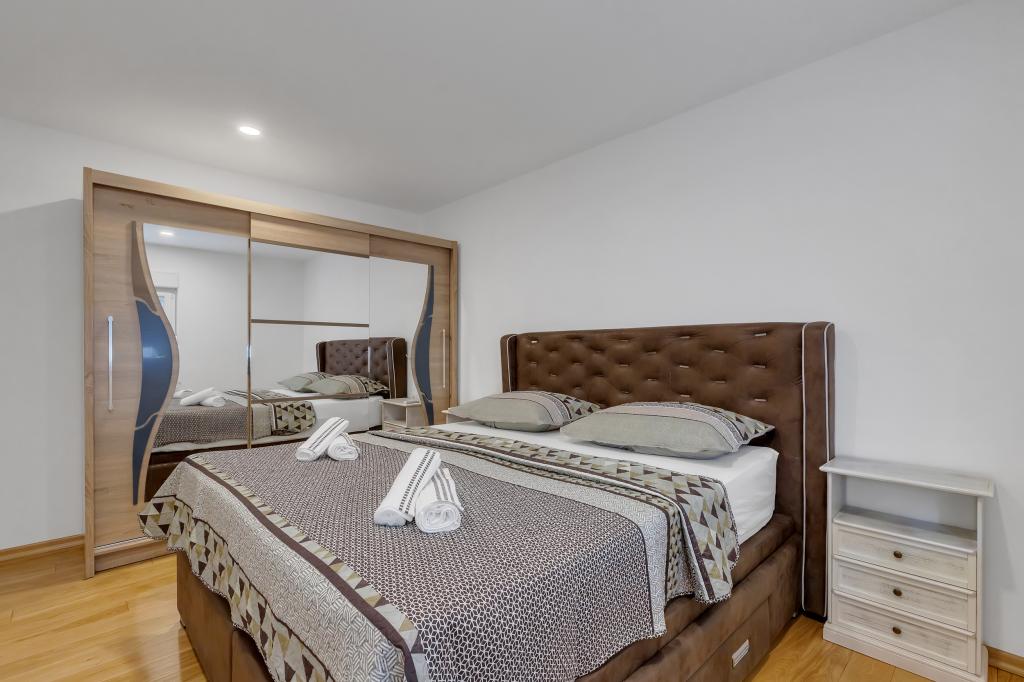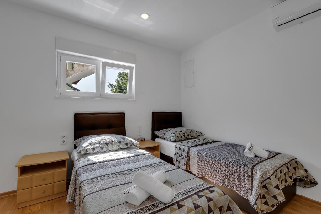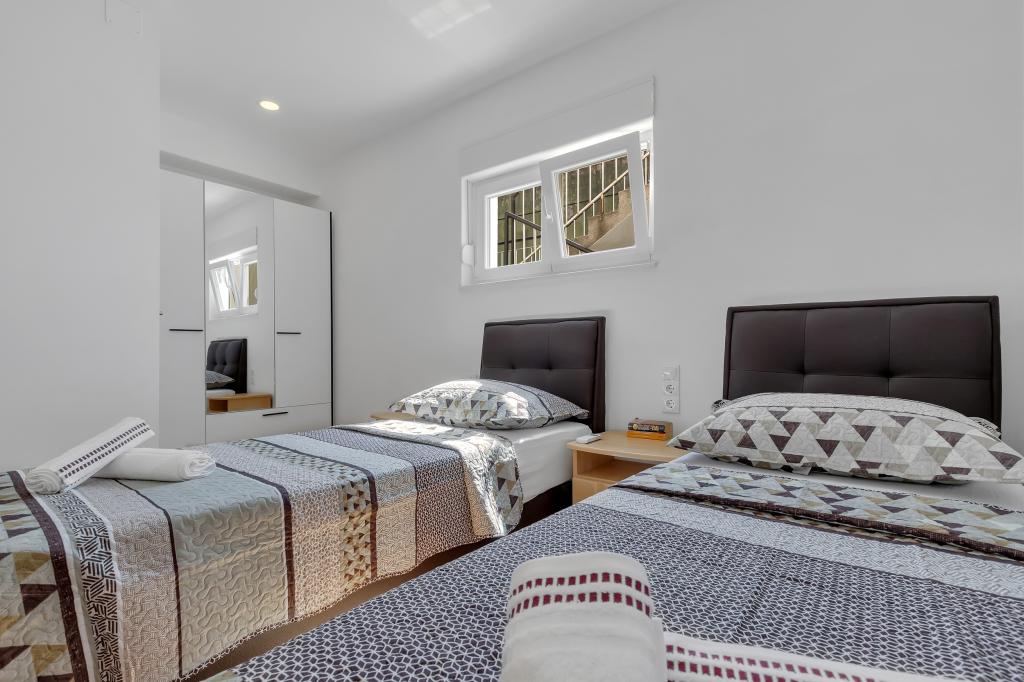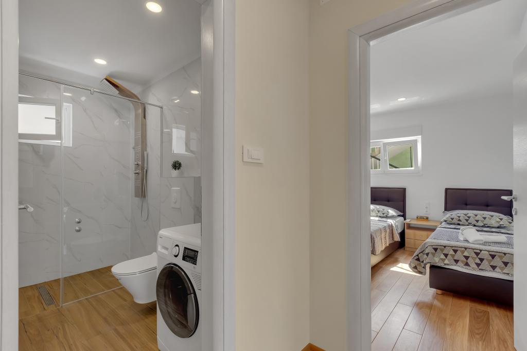 Apartamento/apartamento totalmente equipado con dos habitaciones (doble, cama de 180x200 y la otra con 2x camas separadas que se pueden conectar si se desea), 2 baños, amplio salón con cocina (40m2 juntos) El apartamento tiene todo lo necesario para una larga Estancia cómoda y cómoda, situada en el centro de Makarska.
