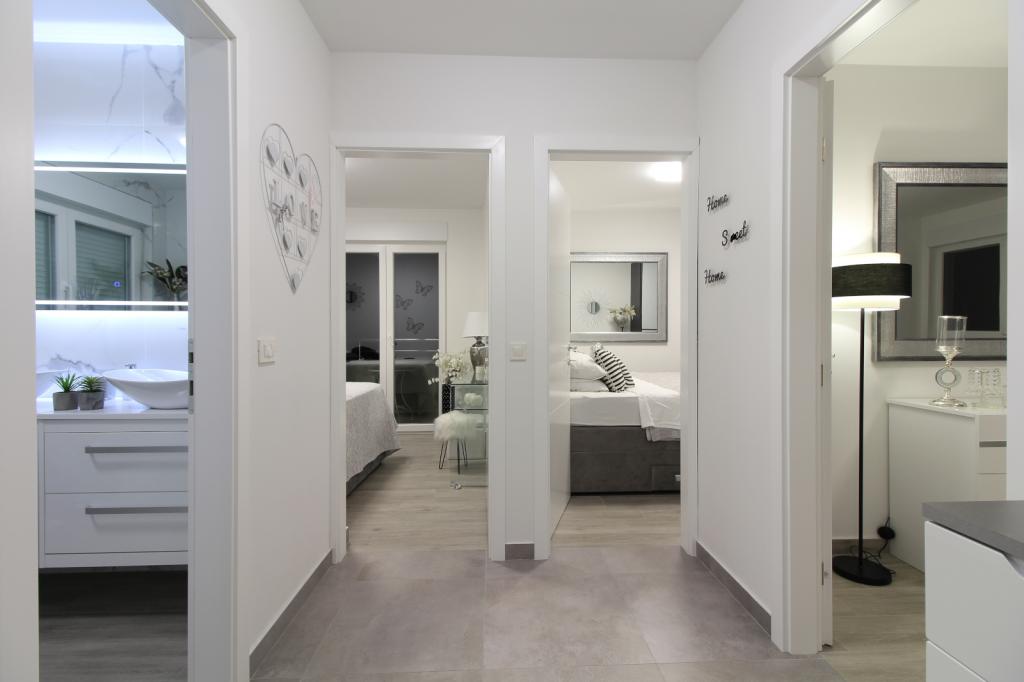 Ático de lujo con jacuzzi privado / vistas al mar, a la ciudad y a la isla. El nuevo ático de 125 m2 con aire acondicionado contiene 3 dormitorios, cada habitación tiene un balcón, dos baños con lavadora, jacuzzi privado grande (5 1) en la terraza con vista al mar, TV de pantalla plana 55, TV 4K INTELIGENTE, comedor con cocina con lavadora y equipamiento completo de cocina, acceso a una gran terraza, con muebles de exterior y jacuzzi. Se ofrece aparcamiento gratuito en el establecimiento. El apartamento es ideal para unas vacaciones familiares en Makarska, grupos para vacaciones de amigos y para unas vacaciones activas en la Riviera de Makarska. Makarska es uno de los centros turísticos más famosos de Dalmacia (el turismo organizado se ha desarrollado desde los años 60) y una de las pequeñas ciudades más pintorescas del Adriático, con muchas calles estrechas características en el casco antiguo. También es conocido por sus kilómetros de playas de guijarros y su proximidad al Parque Natural Biokovo, que ofrece caminatas, diversas excursiones y actividades con hermosas vistas panorámicas de la ciudad, las islas, Italia ... Si tiene más preguntas, no dude en contactarnos. Le deseamos una cálida bienvenida y una agradable estancia en nuestro apartamento.
