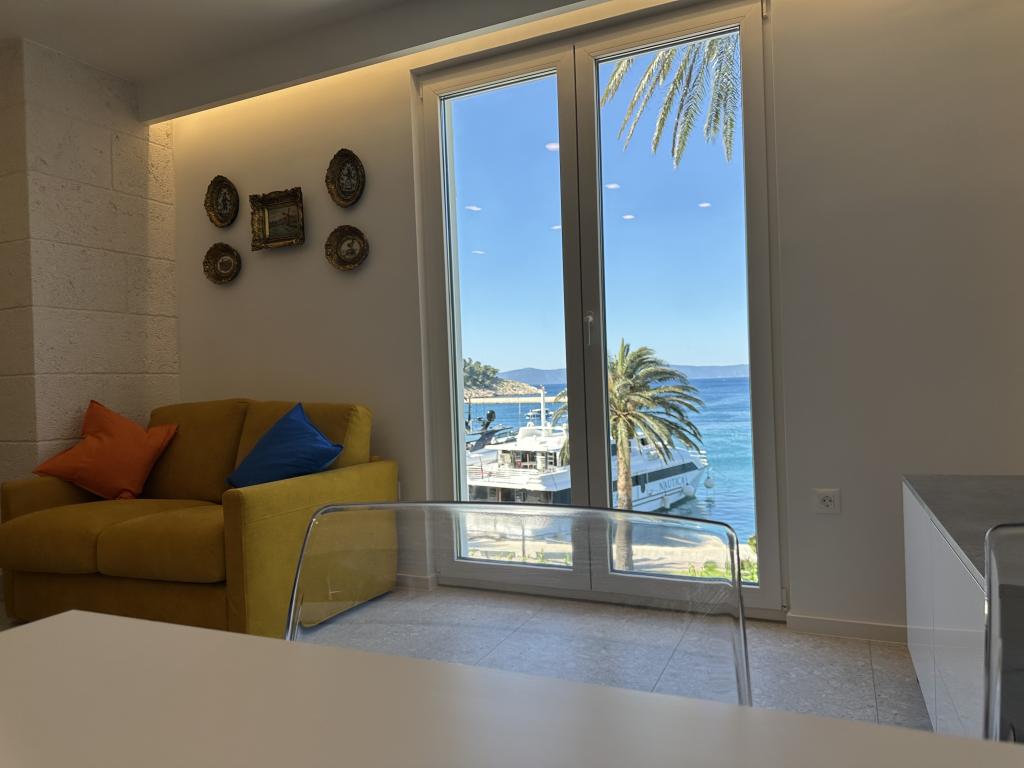El apartamento Palma Gena ha sido completamente renovado en un edificio residencial en pleno centro del casco antiguo. Está situado en plena costa, y las vistas desde las ventanas orientadas al sur se extienden hasta el hermoso puerto de Makarska, las penínsulas de Sv. Petar y Osejava y la isla de Hvar. Se encuentra junto a la palmera más alta del paseo marítimo de Makarska. Pertenece a una familia desde hace más de medio siglo y cuenta la historia de la antigüedad y las leyendas de Makarska. El apartamento se encuentra en pleno centro de la ciudad, así que nada más bajar del apartamento al paseo marítimo, la ciudad se abre ante usted en todo su esplendor. Le espera para que la explore. Numerosos cafés y restaurantes están a poca distancia, como una farmacia, un banco, una oficina de correos... La playa de guijarros de Donja Luka está a unos 10 minutos a pie, cruzando el hermoso paseo marítimo de Makarska. Aunque está en pleno centro y bullicioso, el apartamento ofrece paz e intimidad y es la elección perfecta para quienes quieran experimentar el estilo de vida mediterráneo.