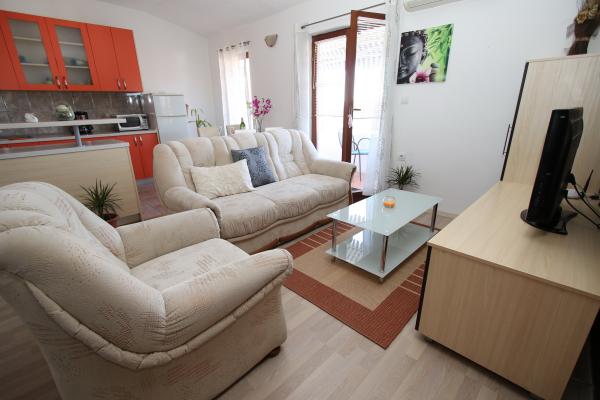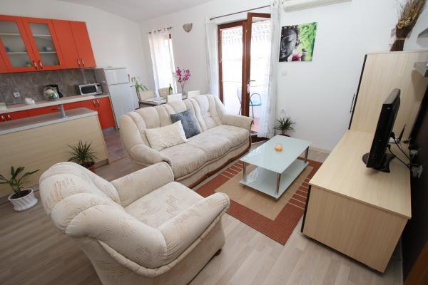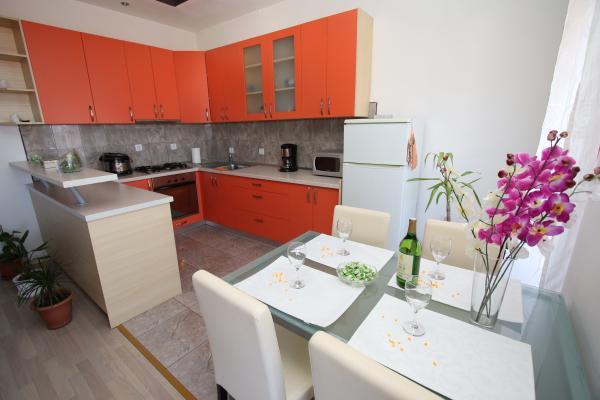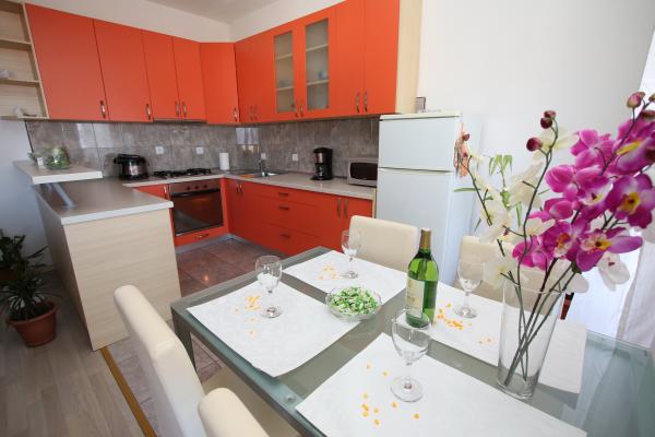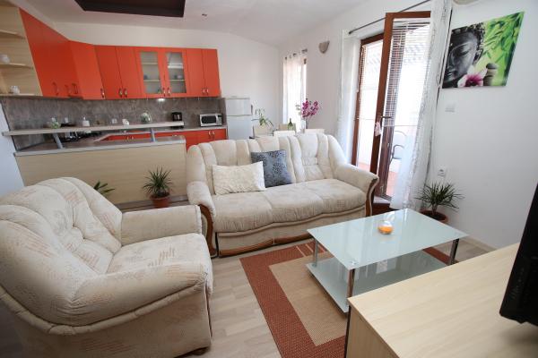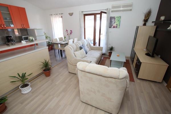 apartamento está decorado de forma moderna, estacionamiento, wi-fi. Se encuentra a 100 metros de la plaza principal en las proximidades de una tienda, restaurante 80m Ljekarana también. La instalación es adecuado para familias con niños, ya que está situado en una calle tranquila, con una vista de la costa.