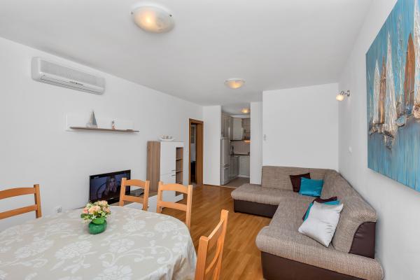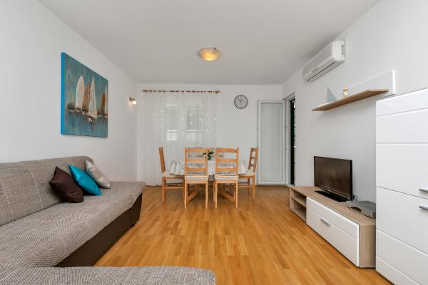Le ofrecemos un apartamento confortable y moderno en el centro de Makarska, lejos de la playa a solo 50 m. El apartamento consta de dos dormitorios, baño, cocina, salón y balcón. Todas las habitaciones tienen aire acondicionado, tv, internet gratis. El aparcamiento está asegurado. La hermosa y larga playa rodeada de pinos se encuentra frente a la casa. Muy cerca se encuentran restaurantes, parque infantil, farmacia, tiendas ... Las reservas requieren un anticipo del 20%. Para todas las preguntas, estoy a su disposición. Saludos cordiales, Katarina Birgmajer