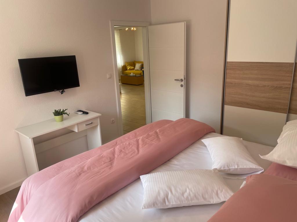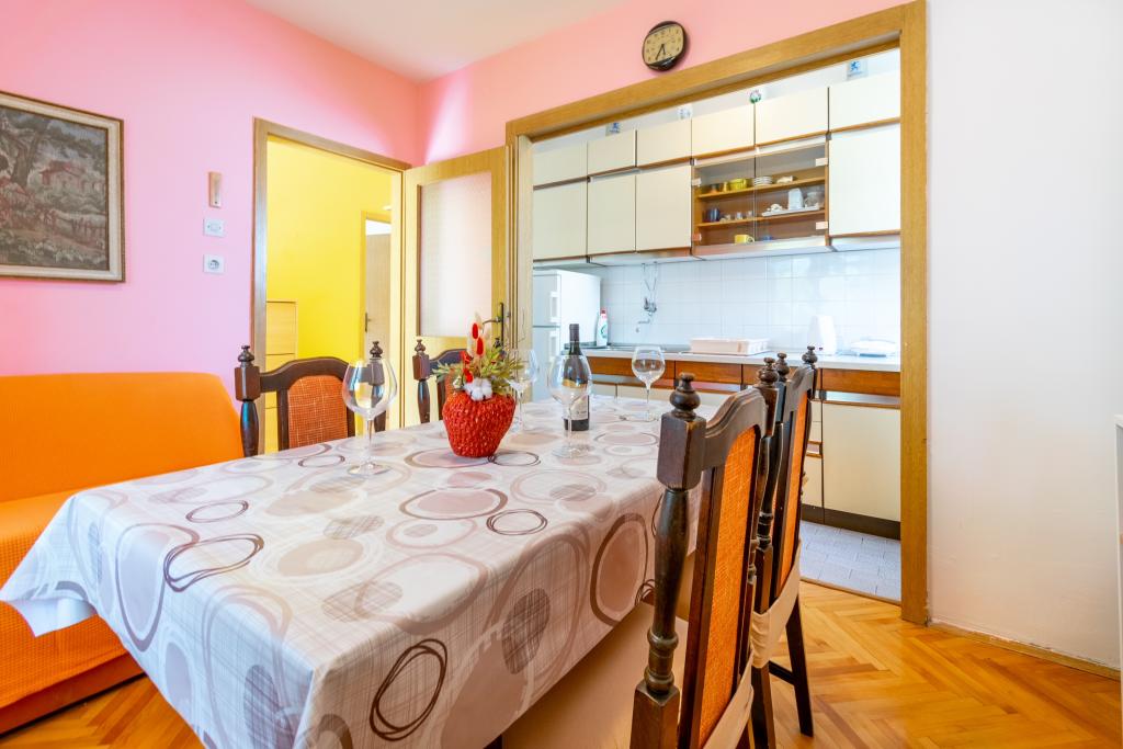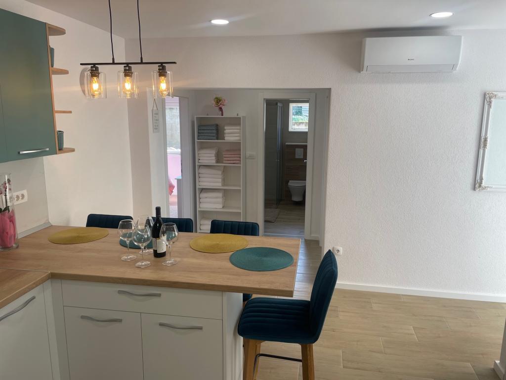 Apartamentos totalmente equipados en pleno centro de la ciudad, en una zona tranquila. El complejo se encuentra a un minuto a pie de la plaza principal de la ciudad (Plaza Kačić), y en las inmediaciones encontrará una amplia selección de tiendas y restaurantes. La playa de Osejava está a 5 minutos a pie y la playa principal de la ciudad, a 10 minutos a pie, cruzando el paseo marítimo. El apartamento City App 4 se encuentra en la planta baja, completamente renovado y equipado, con terraza. El apartamento City App 6 se encuentra en la primera planta de la misma casa, también totalmente equipado, con balcón y terraza. Cada apartamento tiene una plaza de aparcamiento frente al apartamento.