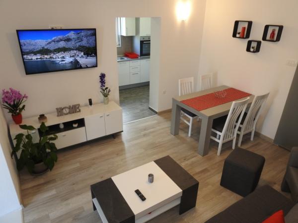 Los apartamentos están situados en una zona tranquila de Makarska, a 300 metros del centro. Dispone de terraza, parking, aire acondicionado y TV. También hay una parrilla al aire libre. La ropa de cama, las toallas y la limpieza final están incluidas en el precio.