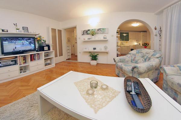 Ofrecemos una suite con dos habitaciones con capacidad para cuatro personas, en el centro de Makarska, y de la playa central 80 metara.Apartman está ubicada en la tercera planta del edificio, que se encuentra en un entorno tranquilo, equipadas con aire acondicionado, TV vía satélite, WI- FI a internet, lavadora, lavavajillas, la vajilla ...