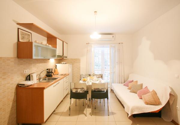 Casa de la familia de apartamentos situado en una tranquila zona residencial de Makarska, cerca de la playa de arena y el hotel Dalmacia y Biokovka. Distancia del centro de la ciudad está a 10 min paseos junto al mar.