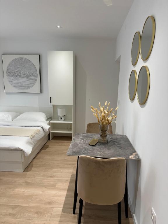 Los apartamentos Olga 1, completamente renovados, se encuentran en Makarska, en la zona de "Plaža", a solo 50 metros del mar y la playa. Ofrecemos 3 apartamentos ubicados en la primera planta. También ofrecemos un apartamento para 4 personas en la planta baja. Todos los apartamentos disponen de aire acondicionado, baño privado, cocina equipada, Smart TV vía satélite, wifi y un balcón donde podrá disfrutar del tiempo libre. Hay aparcamiento privado en el patio delantero. El supermercado más cercano está a 100 metros y hay restaurantes y cafeterías a 50 metros, en la playa. El centro de la ciudad está a 5 minutos a pie. Los apartamentos se encuentran en un entorno tranquilo y apacible.