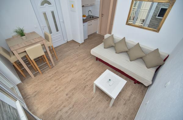 Modernos apartamentos con impresionantes vistas al mar, situado en una zona tranquila de la población y ofrecer un completo descanso y relajación. Los apartamentos disponen de un patio ajardinado con parking y son ideales para todos los huéspedes (2) (2 adultos, familias con niños, jóvenes). Playa Decorado está a menos de 200 metros, mientras que a la tienda de alimentos se presenta en 1 minuto.