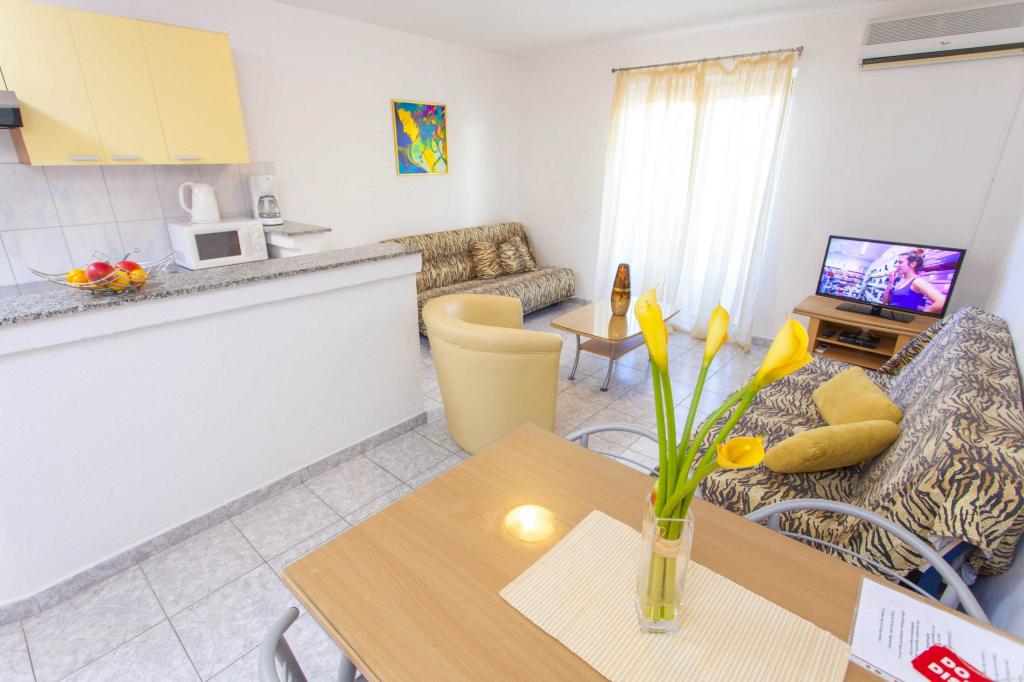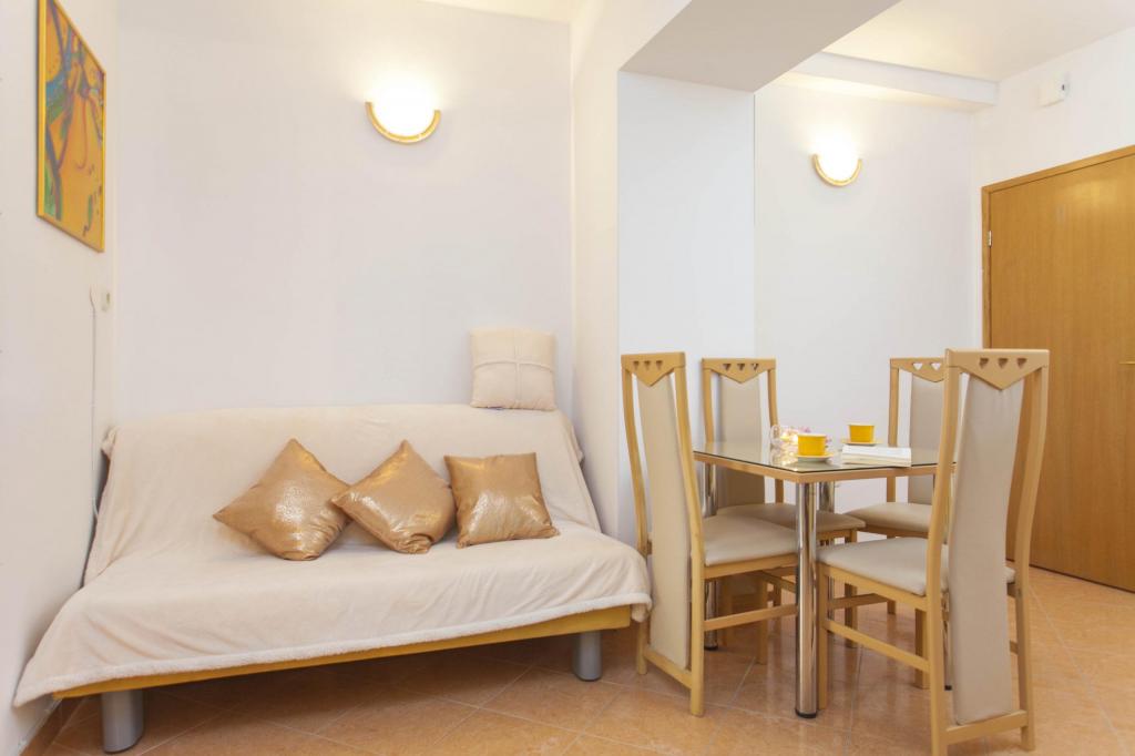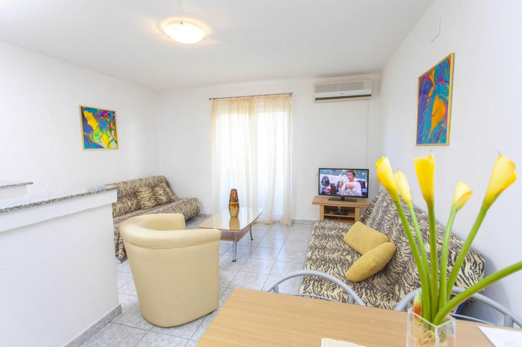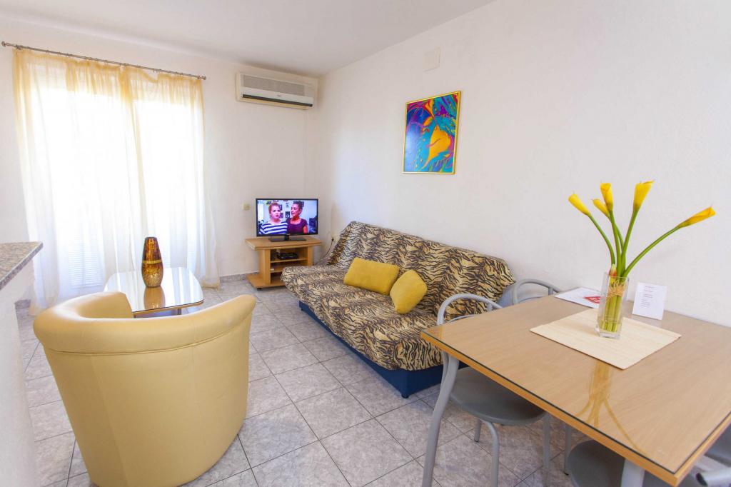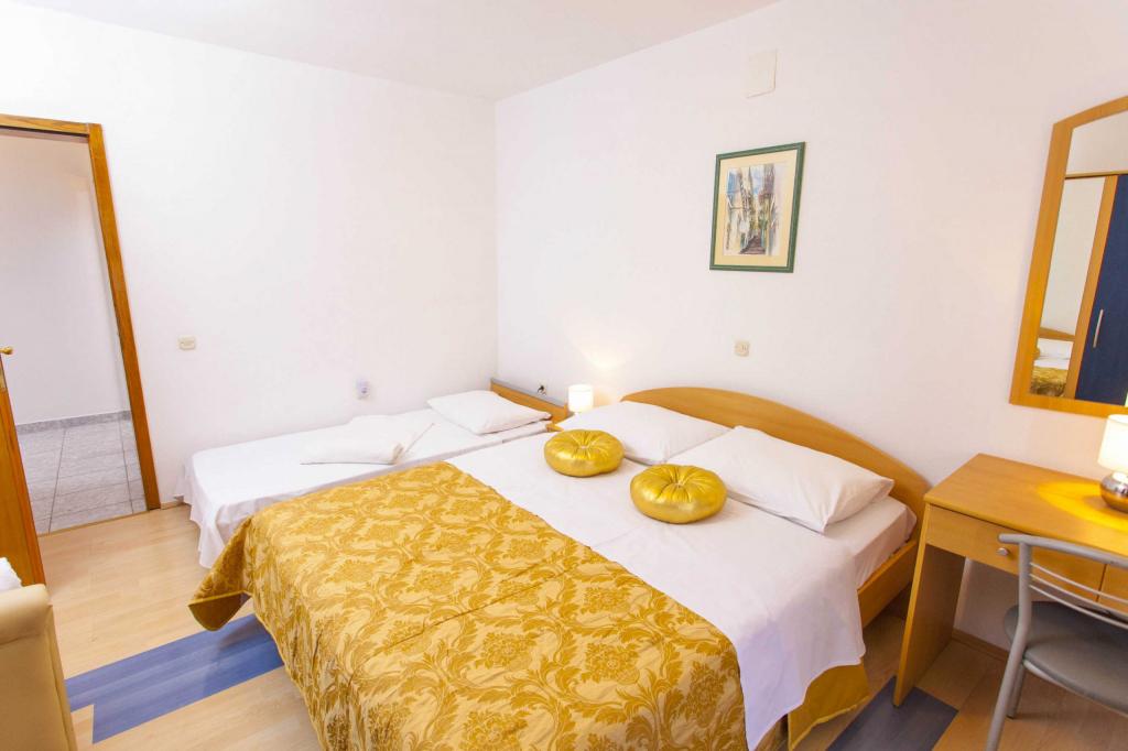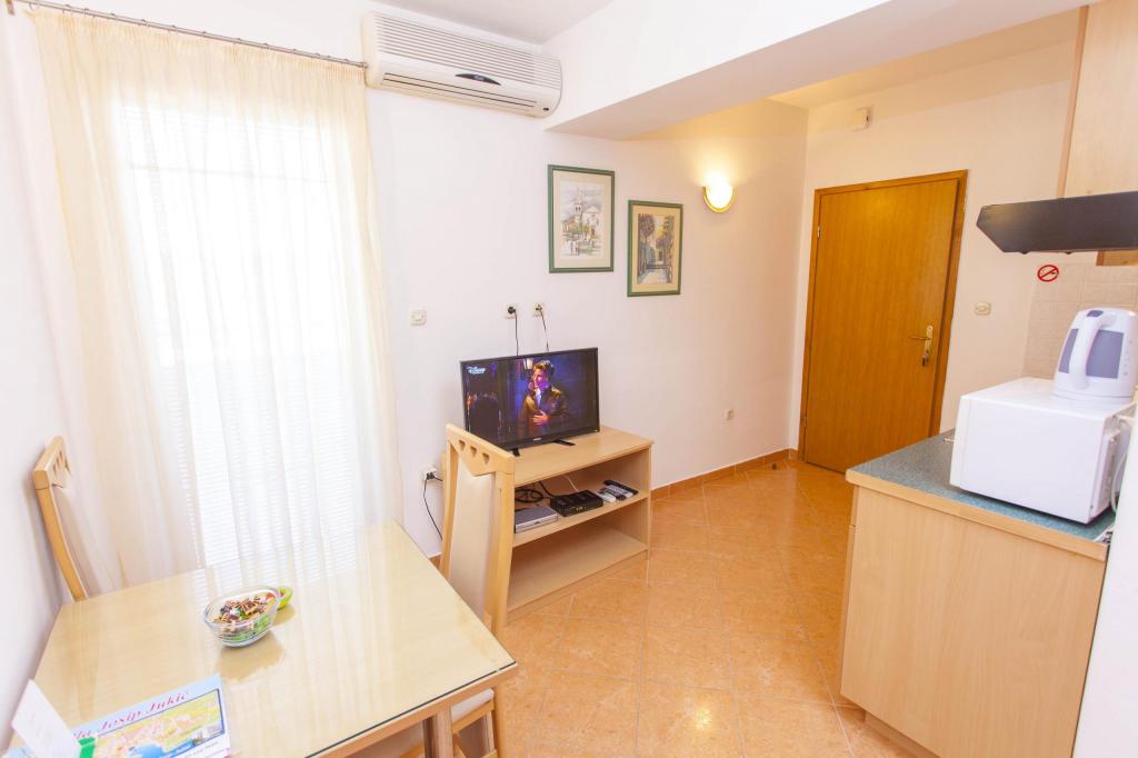 Reservamos el apartamento número 302 dos meses antes y pagamos un anticipo que no era pequeño, pero cuando llegamos, el apartamento estaba alquilado a otros huéspedes. Nos ofrecieron el apartamento 102, donde no funciona el aire acondicionado (fuera de 37 ° C), el aire acondicionado no está en ambos dormitorios como debería ser, o un reembolso, porque saben que Dalmacia está lleno y no hay apartamentos libres en ningún lado. . Esta no es una actitud profesional hacia el huésped y si reserva con ellos debe tener en cuenta que puede tener un “gato en un saco”. No lo recomiendo si puedes ir a otro lado !!!