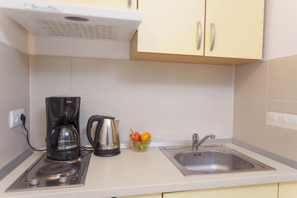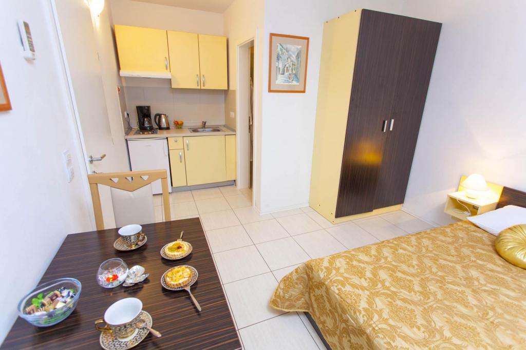 Ofrece alojamiento en hotel para sus huéspedes, que incluye no solo comida. El amable personal, la limpieza diaria de los apartamentos y la información disponible sobre todo lo que te interese, te animarán a disfrutar de unas merecidas vacaciones. Intentaremos brindarte la posibilidad de alquilar un auto, transporte al aeropuerto, organizar excursiones, lo que quieras :)