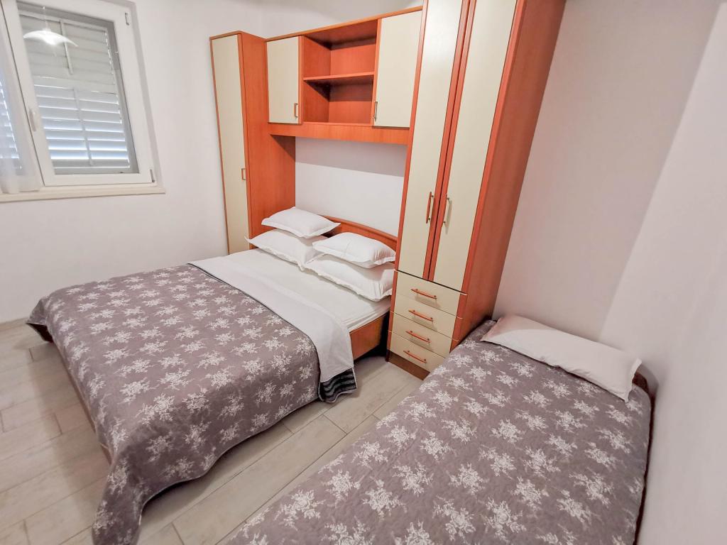 ¿Quieres estar así de cerca de la playa? Makarska: a 70 metros de la playa principal (aproximadamente 1 minuto a pie) Aparcamiento gratuito Wi-Fi gratuito Uso gratuito del aire acondicionado Nuestros apartamentos: V1 - apartamento para 5 personas, planta baja, una cama grande y una cama individual en la habitación y un sofá cama en el salón V2 - estudio para 3 personas, tercer piso, una cama grande y una cama individual, balcón con vista al mar vista V3 - estudio para 3 personas, tercer piso, una cama grande y una cama individual, balcón con vista al mar V4 - apartamento para 4 personas, tercer piso, una cama grande en la habitación y un sofá cama en la sala de estar, balcón con vista al mar Todos los apartamentos tienen su propia cocina y baño/aseo. Para precios y otras preguntas, por favor contáctenos. Esperamos su llegada