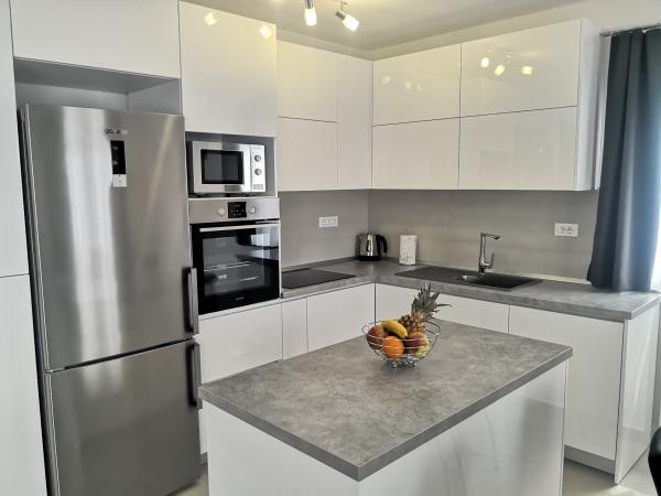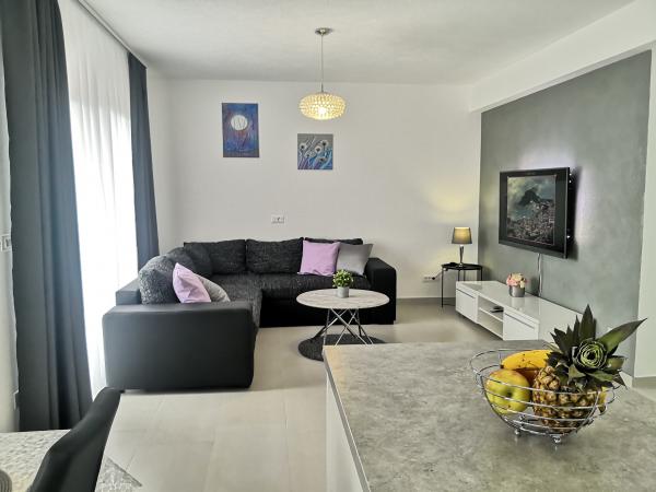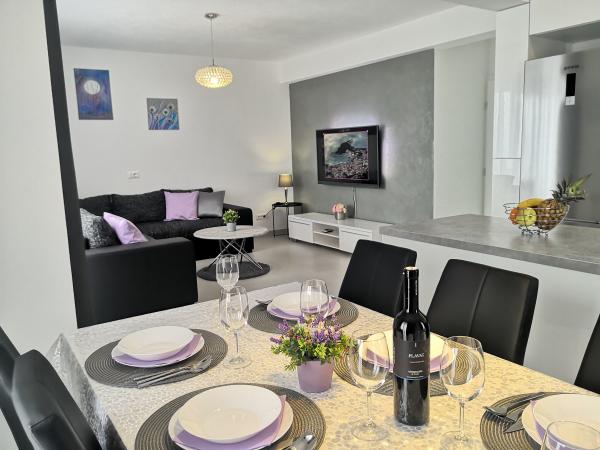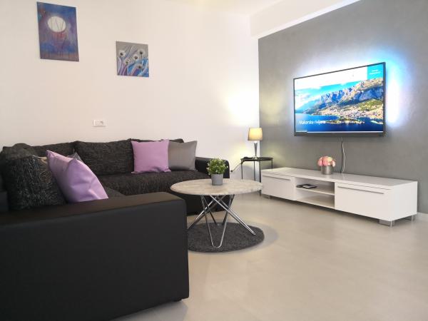 Apartamento recién amueblado y lujosamente amueblado ubicado en una zona tranquila de Makarska con una hermosa vista de Makarska, mar, islas y montaña Biokovo. El apartamento incluye todo lo necesario para unas vacaciones de descanso. Aire acondicionado, cocina, lavaplatos, lavadora, internet, televisión, espacio para estacionamiento y la posibilidad de usar una parrilla al aire libre con una mesa grande en el patio y un jardín aún más hermoso.