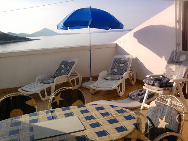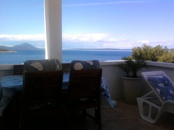 Los apartamentos están situados en una zona muy tranquila y pequeña península Paarl antes de la entrada a la ciudad de Mali Losinj, con vistas a las tres islas vecinas de Cres, Rab y Pag. Primera línea de mar. 15 minutos a pie del centro, a 3 minutos a pie hasta el restaurante y tiendas, a 2 minutos a pie de la playa muy pequeña de guijarros y rocas, y un 4 minutos a pie a la playa con ducha. Vista al mar desde cada balcón, la cocina, la sala de estar, de la cama. Desde la terraza y desde el salón se puede ver a los delfines en el mar frente a la casa. Aparcamiento privado para 5 coches. Al aire libre Grill con vistas al mar. Usted escuchará el sonido de las olas, de verano a veces grillos. No escucho los coches de las calles. A veces oigo ovejas y pollos. En la noche de la hermosa vista de las estrellas y la Vía Láctea. Parte de la terraza está cubierta (sombra). Las noches de verano son agradables en las terrazas con la brisa que viene del mar. El olor de los pinos, Pittosporum, adelfas, lavanda, salvia, eucalipto, romero y olivos en el jardín. El agua para beber. El cielo en una pequeña isla