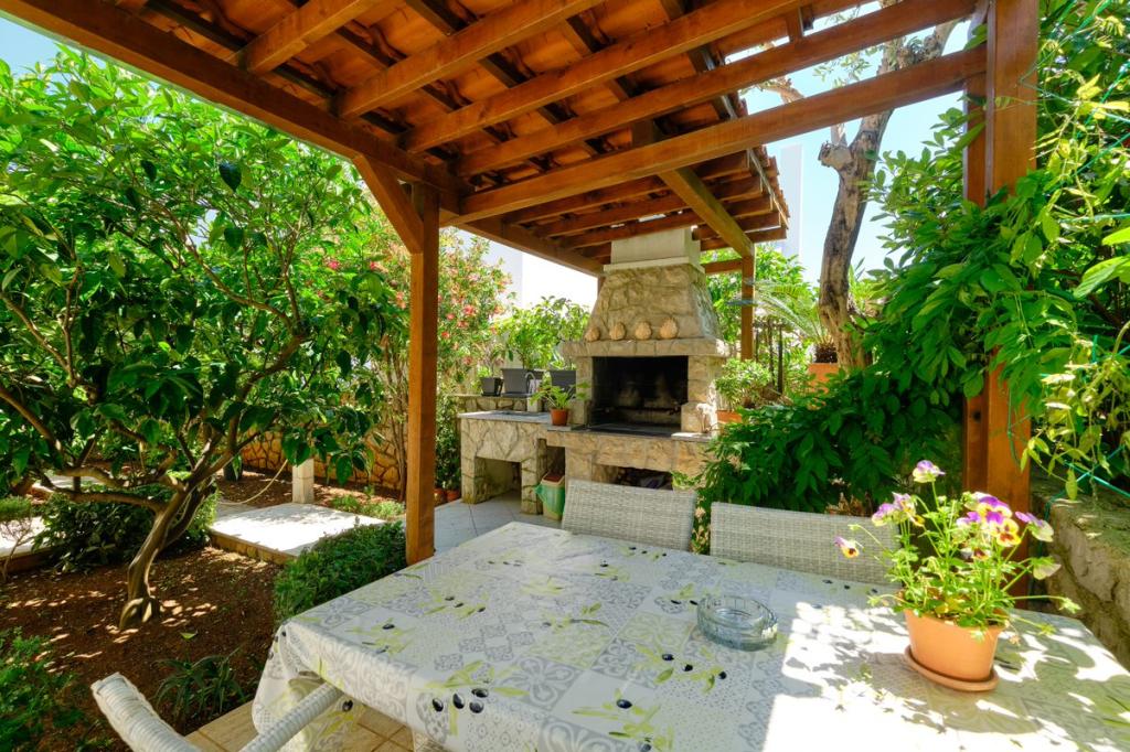 El apartamento es espacioso, muy bien decorado con una chimenea en el jardín. Dispone de aire acondicionado e internet WIFI. Cerca hay un restaurante, tienda, parque infantil. La playa no está lejos del apartamento y el centro de la ciudad está a 10 minutos. El precio incluye parking delante de la casa,