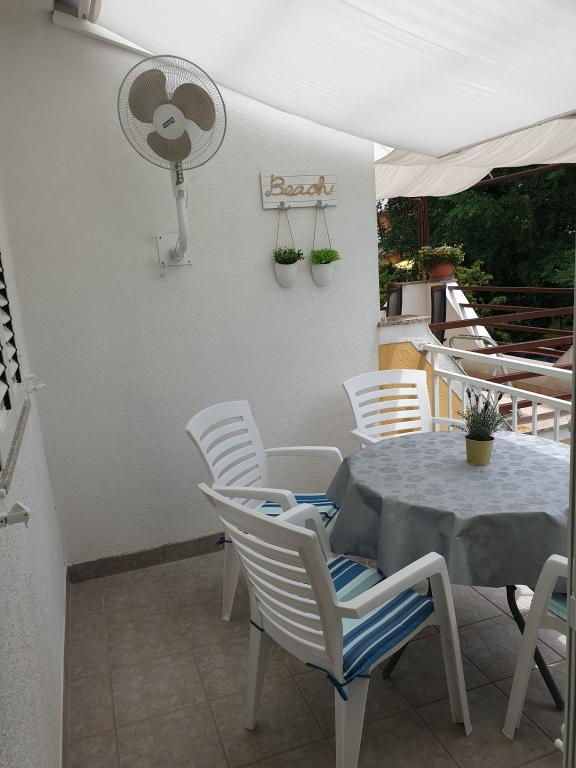 Apartamento de dos dormitorios. AP 2+1 con una cama supletoria se encuentra en el 1er piso de una casa familiar. La cama supletoria es de naturaleza de tres plazas que se puede plegar y convertir en una cama doble. El apartamento tiene una entrada independiente, su propia pequeña terraza cubierta, plaza de aparcamiento, aire acondicionado, TV y otros equipos para una estancia confortable para una familia de tres. El área del apartamento es de 30 m2 La casa está ubicada al final de un callejón sin salida, no hay tráfico. También hay una barbacoa en el patio, rica en vegetación, que pueden utilizar los huéspedes. La distancia desde la primera playa organizada con duchas es de unos 400 m, lo que supone unos 8 minutos andando. Si te gusta caminar, descubrirás varias calas y playas. Toda Malinska es en realidad una playa ajardinada que debe explorarse.