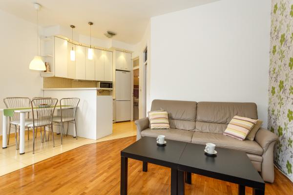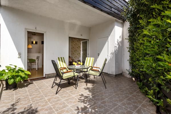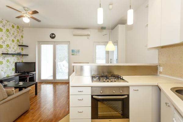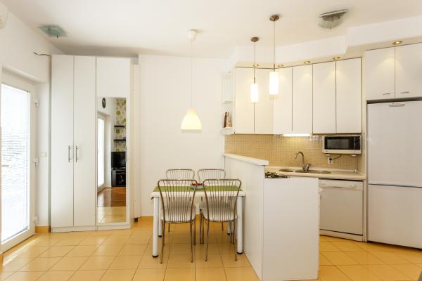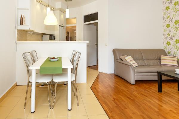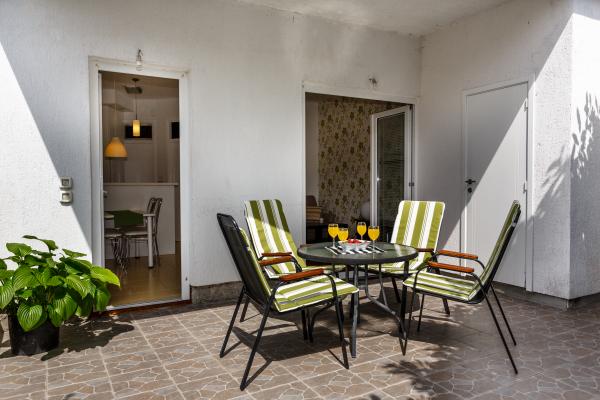 Apartamento totalmente equipado para 4 personas en una zona tranquila de Malinska. Gran terraza amplia con mucha vegetación. Adecuado para familias con niños pequeños. En la zona hay una tienda, un parque infantil, una playa y una cueva en sí.