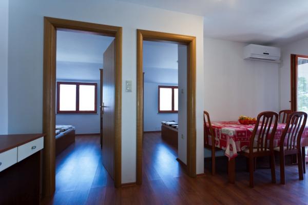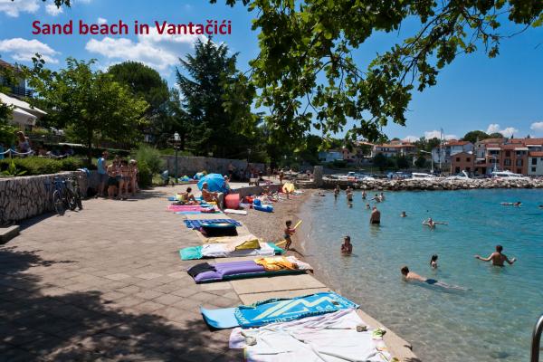 Totalmente equipado y modernos apartamentos en un lugar tranquilo (el callejón sin salida) en un pequeño pueblo Vantacici (2,5 km desde Malinska) en la isla. La casa está en una posición privilegiada para las vacaciones debido a la playa está a sólo 50 metros y está rodeado de vegetación, por lo que era una zona de clima agradable. Ofrecemos un total de 4 suites, cada una provista de una plaza de aparcamiento en el jardín a la sombra. Nuestra casa está directamente relacionada con la ruta caminando por la playa, por lo que incluso los niños pequeños pueden ir a la playa y de vuelta sin sus padres. En la costa hay precioso paseo marítimo (paseo marítimo) que conecta Porat, Vantacici y Malinska.