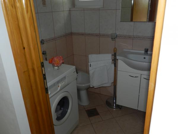 CONSTRUCCIÓN: Categoría 3 estrellas. Total de 9 camas en 3 unidades. El apartamento está rodeado por un jardín abierto (tamaño de 500 metros cuadrados) con árboles, flores y arbustos. El propietario vive en la casa (con entrada independiente). Para uso colectivo disponibles: Internet (WiFi), terraza, columpio, barbacoa, chimenea al aire libre y jardín. Piso: Piso 3 habitaciones 45qm, para 5 personas en el sótano o estudio apartamento en el 1er piso, 1 dormitorio, 25 metros cuadrados, para 2 personas. aire acondicionado. La entrada en el 1er piso, a través de las escaleras exteriores a la zona de estar / dormitorio pasillo. escaleras exteriores cubiertos 1ª planta: Salón / dormitorio (25 m²) con 1 cama doble, comedor (2 plazas), televisión, acceso a la terraza (16 m², cubierta, muebles de jardín, 1 mesa, 4 sillas, junto con una sala de estar / dormitorio). cocina con comedor, tv, cocina eléctrica, refrigerador (nevera), microondas, cafetera, tostadora, agua eléctrico y acceso al balcón. cuarto de baño (4 m²) con ducha, lavabo e inodoro.