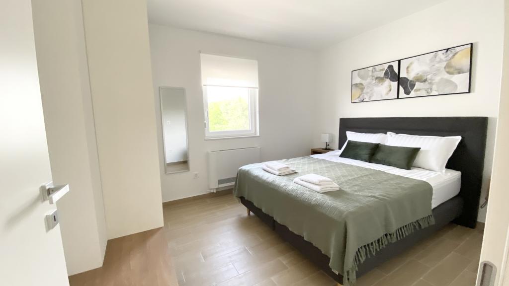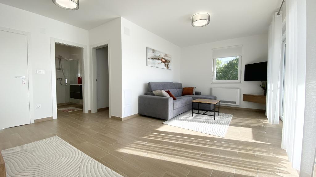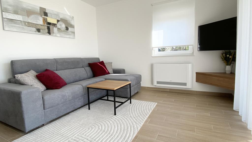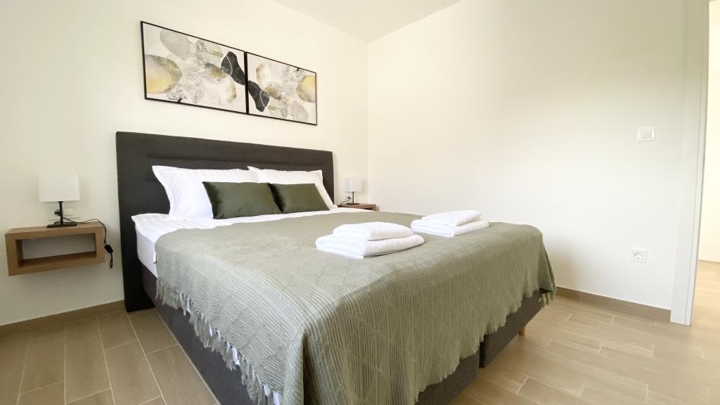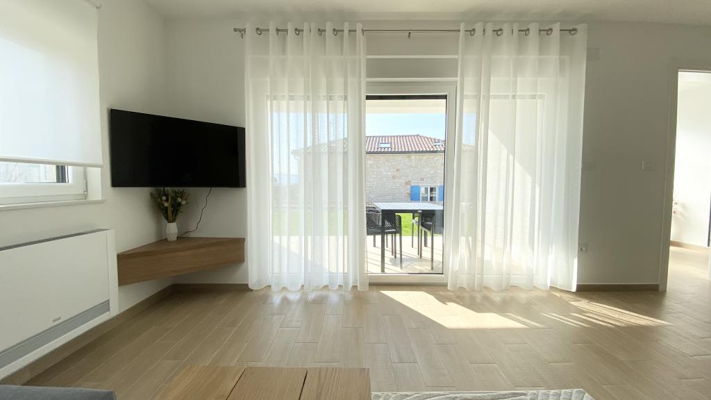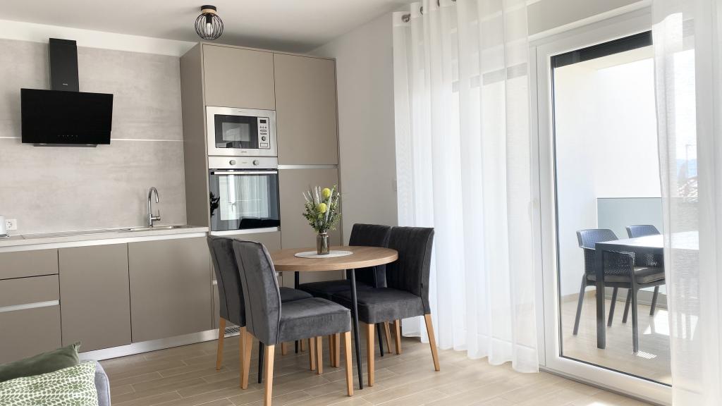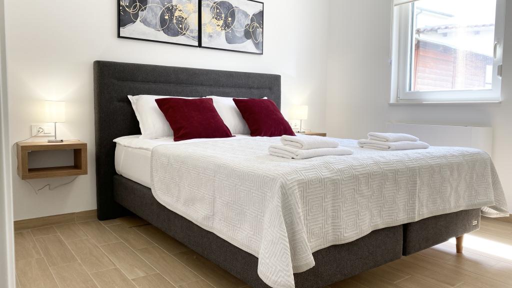Villa Malina es un edificio de apartamentos ubicado en una zona tranquila del pueblo. Cuenta con tres apartamentos de 50, 55 y 60 m², modernamente equipados, con entradas independientes y plazas de aparcamiento vigiladas en el patio. Cada apartamento cuenta con salón, dormitorio, baño, cocina y terraza cubierta. En el salón hay un sofá cama que puede utilizarse como cama supletoria para dos personas. La cocina está equipada con vajilla, paños de cocina, horno, microondas, nevera con congelador, hervidor de agua, placa eléctrica, tostadora y lavavajillas. El equipamiento adicional incluye conexión a internet, aire acondicionado, aspiradora, lavadora y secador de pelo. Hay una cuna gratuita disponible bajo petición. Para estancias de 10 días o más, se aplica un 10 % de descuento.