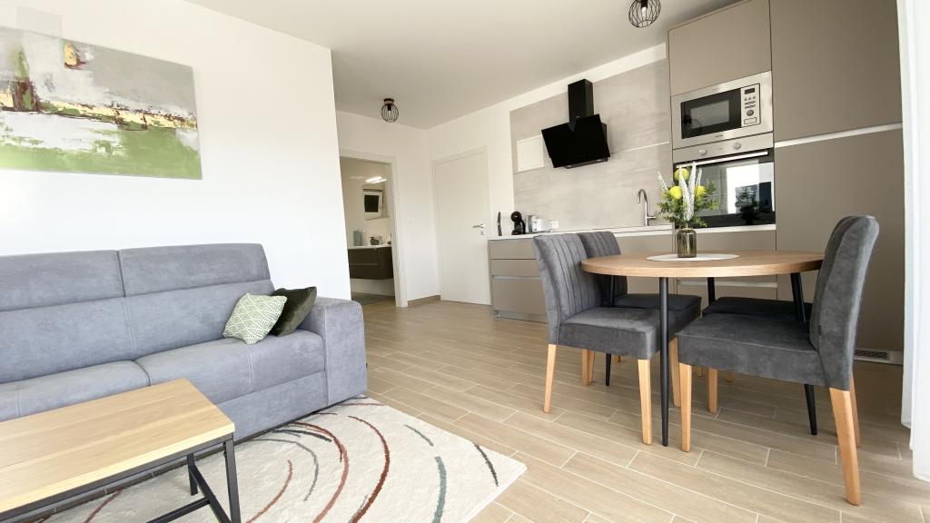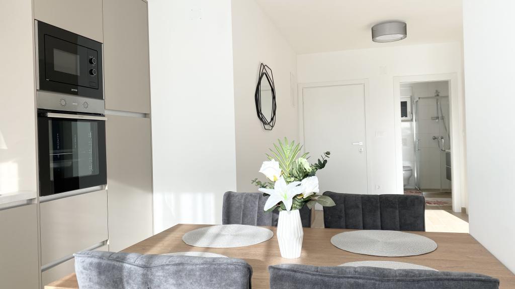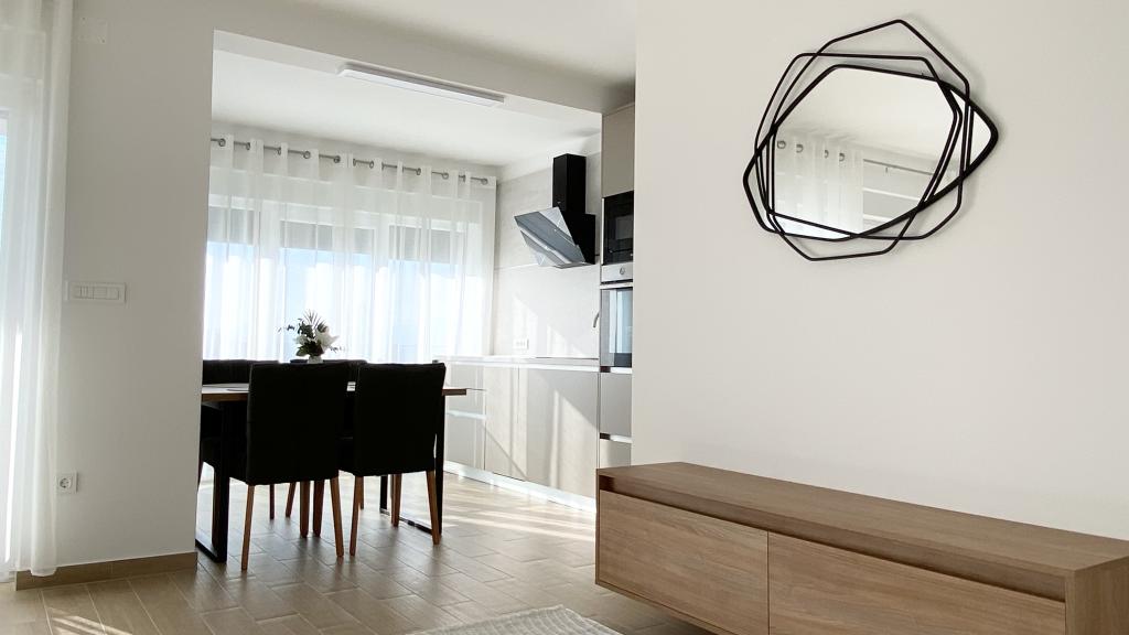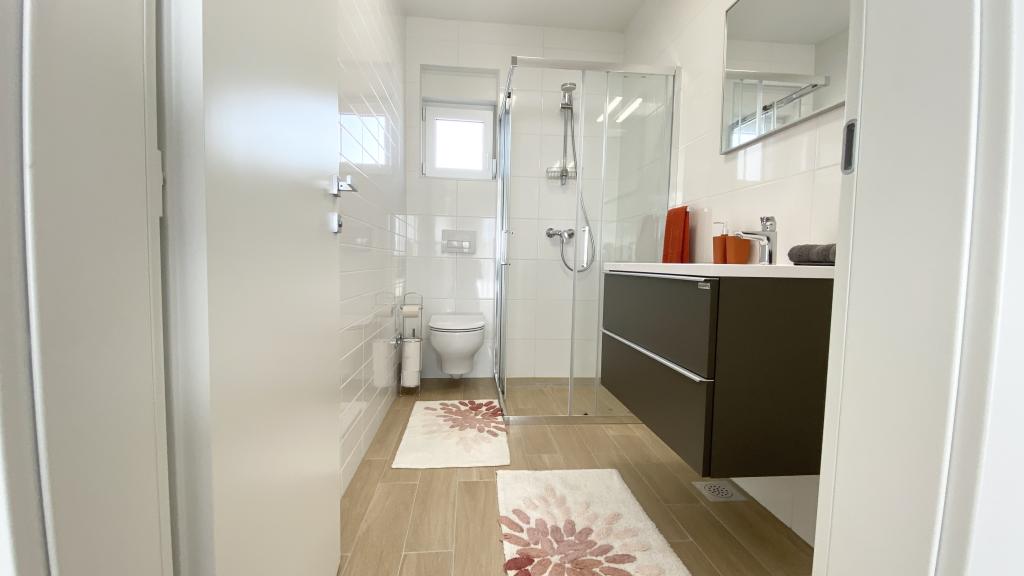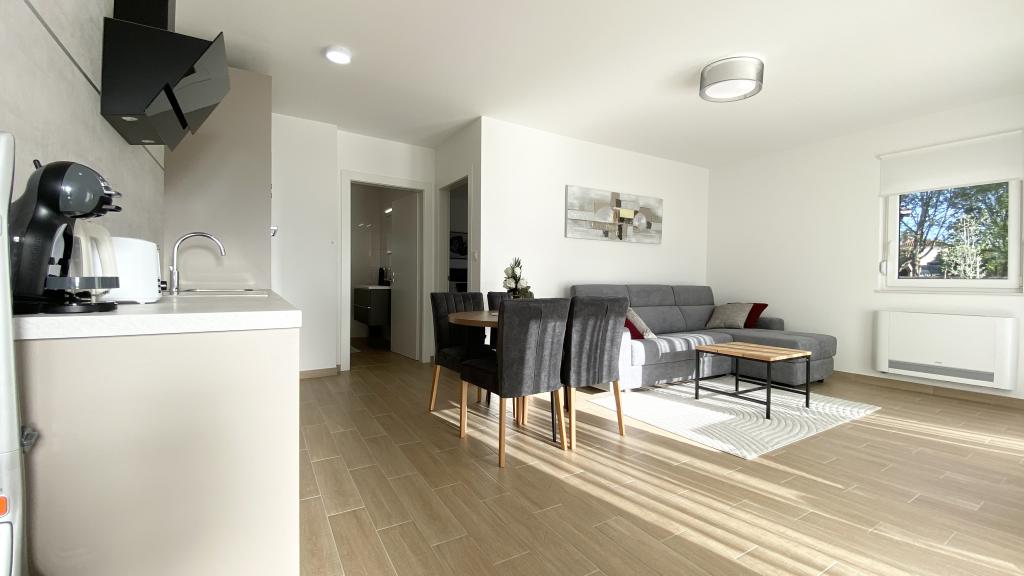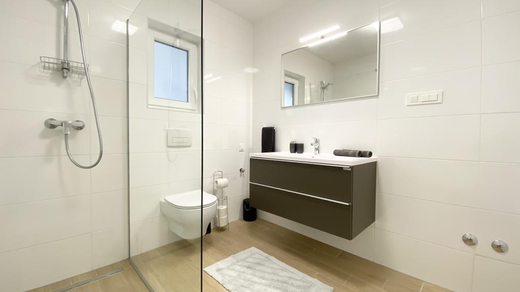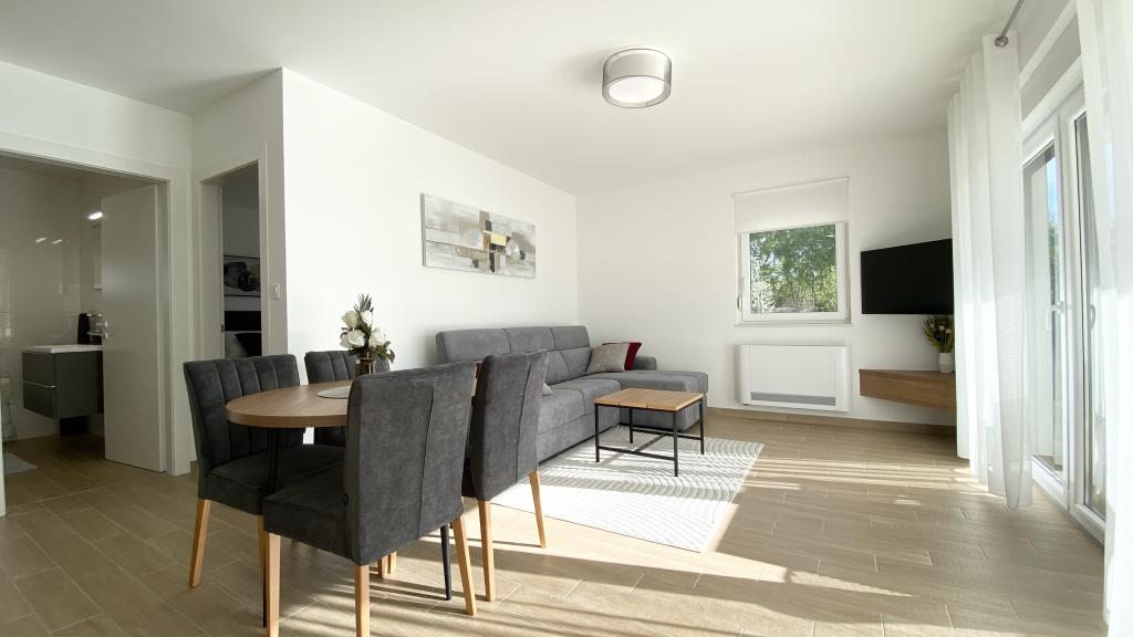 Villa Malina es un edificio de apartamentos ubicado en una zona tranquila del pueblo. Cuenta con tres apartamentos de 50, 55 y 60 m², modernamente equipados, con entradas independientes y plazas de aparcamiento vigiladas en el patio. Cada apartamento cuenta con salón, dormitorio, baño, cocina y terraza cubierta. En el salón hay un sofá cama que puede utilizarse como cama supletoria para dos personas. La cocina está equipada con vajilla, paños de cocina, horno, microondas, nevera con congelador, hervidor de agua, placa eléctrica, tostadora y lavavajillas. El equipamiento adicional incluye conexión a internet, aire acondicionado, aspiradora, lavadora y secador de pelo. Hay una cuna gratuita disponible bajo petición. Para estancias de 10 días o más, se aplica un 10 % de descuento.