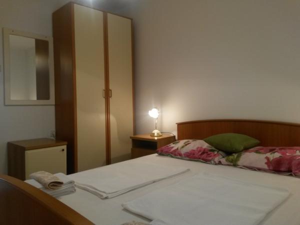 En una zona tranquila y verde de Svetog Vid se encuentra una casa adosada privada con apartamentos totalmente equipados y funcionales para 2-6 personas. Todos los apartamentos tienen sus propias terrazas desde las que se accede a la unidad. Los propietarios viven en su apartamento en la planta baja de la casa. En el patio hay una gran mesa con bancos y una barbacoa. El aparcamiento se encuentra en el patio, a la sombra de los robles. Se encuentra a 15 minutos a pie del centro de Malinska y a 20 minutos a pie de la primera playa. En la zona hay muchas playas hermosas, paseos marítimos y carriles bici. Para aquellos que buscan diversión, la discoteca Diamant está cerca (aprox. 2 km). El aire acondicionado, la tasa turística, la inscripción, la limpieza final, la TV vía satélite, la ropa de cama, las toallas, los paños de cocina, los detergentes, las esponjas, el papel higiénico y el jabón están incluidos en el precio, y el aparcamiento y la conexión Wi-Fi son gratuitos. COSTES ADICIONALES: - Mascota = 5 €/día - 1 perro - Lavandería = 3 €, - Calefacción de 4-6 €/día - Sólo 1 noche es un 30% MÁS CARO