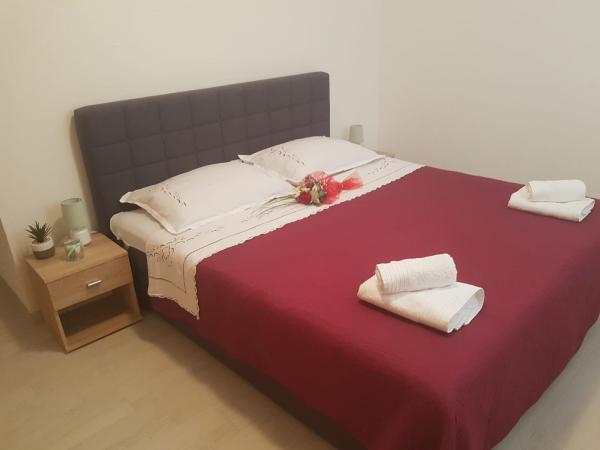 Apartamentos modernamente equipados en una tranquila zona residencial de Marina. La instalación está a 2 minutos a pie de la playa y a 10 minutos a pie del centro. Las instalaciones incluyen zona de barbacoa, aparcamiento gratuito, terraza y balcón con hermosas vistas al mar. Cada apartamento tiene un comedor, una cocina, una sala de estar, un baño, dos dormitorios y un balcón y una terraza. La cocina está equipada con horno, nevera, estufa, microondas, lavavajillas y cocina eléctrica de agua. Cada habitación tiene una cama doble. Además, cada apartamento tiene un baño con lavadora. Dentro de los apartamentos de Ann hay conexión inalámbrica a internet gratuita, toallas y ropa de cama.