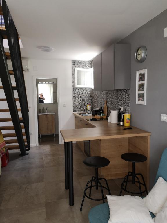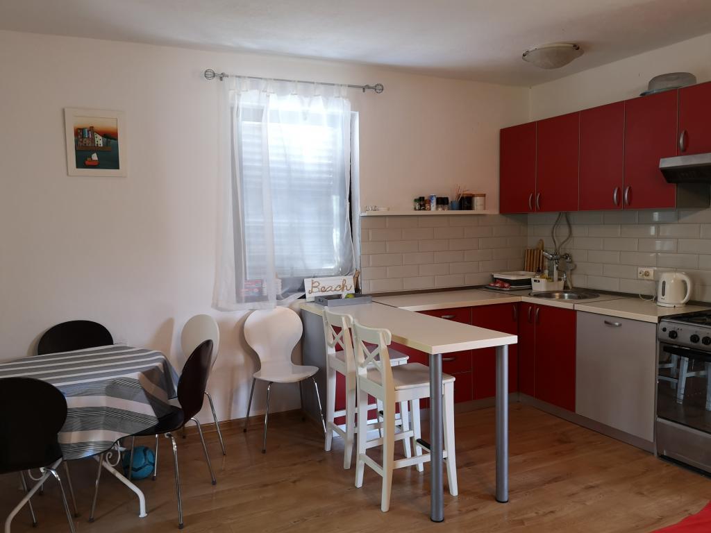 La casa en la playa, con un gran jardín y plaza de aparcamiento, ideal para familias con niños. No se preocupe si olvidó algo o que están cansados de la playa, junto a ti al mar y se puede disfrutar del sol o sombra a su conveniencia. casa de vacaciones está situado en el corazón de un pequeño pueblo de pescadores cerca Poljica Marina y Trogir. La casa tiene una cocina, comedor, cuarto de baño en la planta baja que conduce a la terraza con muebles de jardín. Arriba hay dos dormitorios con seis camas y un aseo. La casa está totalmente equipada para las vacaciones más agradable.