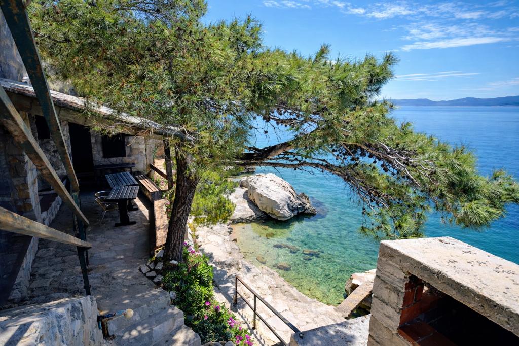Una casa familiar con 3 apartamentos se encuentra en el tranquilo pueblo de Marušići, ideal para quienes buscan relajación, privacidad y cercanía al mar. La propiedad está ubicada en primera línea de playa, rodeada de vegetación y ofrece un ambiente agradable lejos del bullicio de la ciudad. Es una excelente opción para parejas, amigos y familias que desean unas vacaciones tranquilas con aguas cristalinas y naturaleza virgen. Debido a las escaleras (aprox. 200) que conducen a la playa, la propiedad no es apta para personas con discapacidad, bebés, personas mayores o personas con movilidad reducida. Hay aparcamiento privado disponible para los huéspedes, lo que garantiza una llegada y estancia sin preocupaciones.