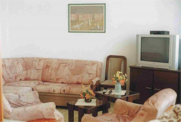 Pasamos casi dos semanas de agosto en el apartamento 4 + 2 con balcón. Cuando llegamos allí, la casa, especialmente la cocina estaba en malas condiciones. Los platos estaban sucias, así que tuvimos que lavar todo a mí mismo de nuevo. Refrigerador de tamaño solo era bueno. De hecho, todo el apartamento estaba muy descuidado. Las puertas pueden ser difíciles de cerrar y abrir (puerta de entrada). El balcón era demasiado pequeño para el número de personas. Hubo momentos en el balcón sólo tres sillas y una mesa pequeña, pero sin paraguas, por lo que no puede sentarse en mal por la tarde. Y sobre todo la relación calidad - precio era muy malo. Demasiado caro ... Recomiendo encarecidamente este alojamiento para familias con niños ya que la playa está a pocos metros del apartamento.