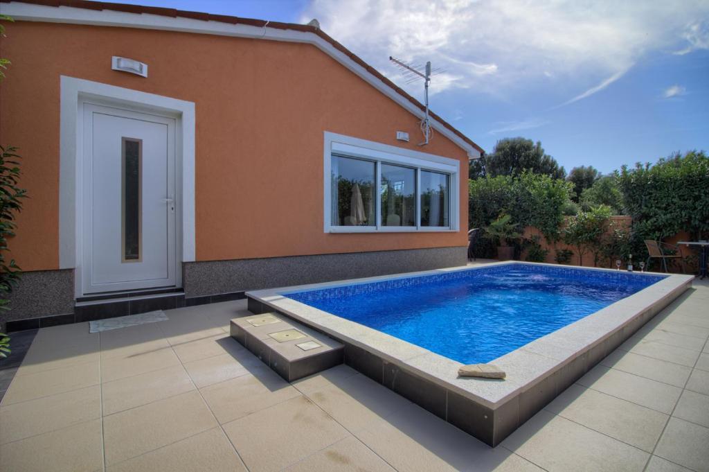 Chalet totalmente equipado con piscina. Hay una piscina privada al aire libre, jardín, barbacoa, conexión Wi-Fi gratuita. estacionamiento gratis. La casa tiene 100m2 de espacio habitable, consta de una cocina y comedor totalmente equipados, sala de estar, dos dormitorios y un baño completo con bidet y lavadora. El salón tiene TV vía satélite y DVD. La casa está a 600 metros de la playa más cercana y se encuentra en una zona tranquila. ¡Esperamos su llegada!