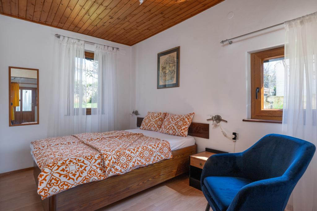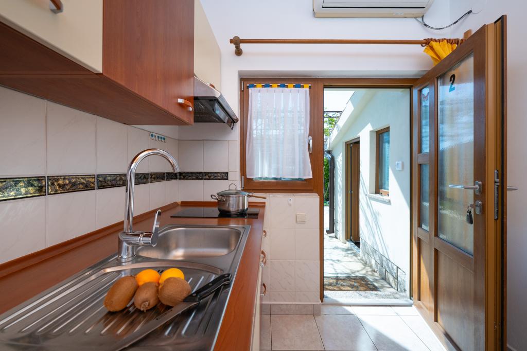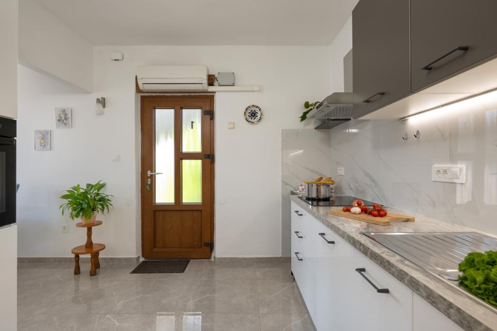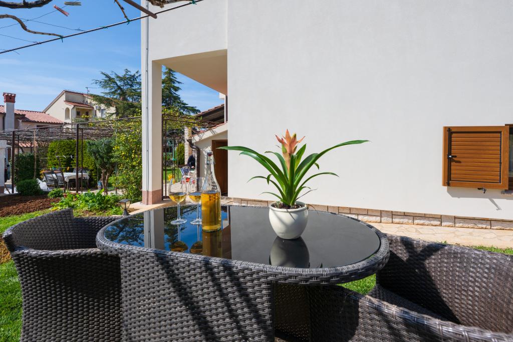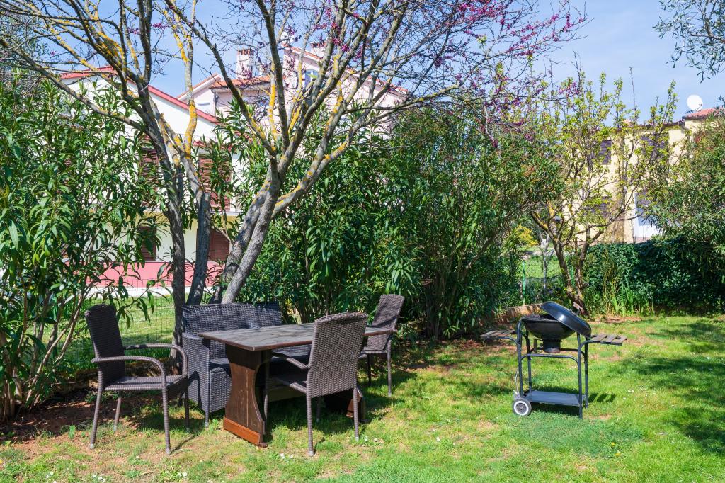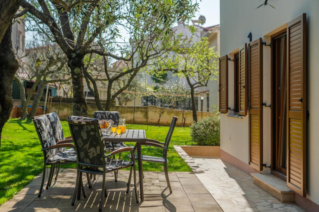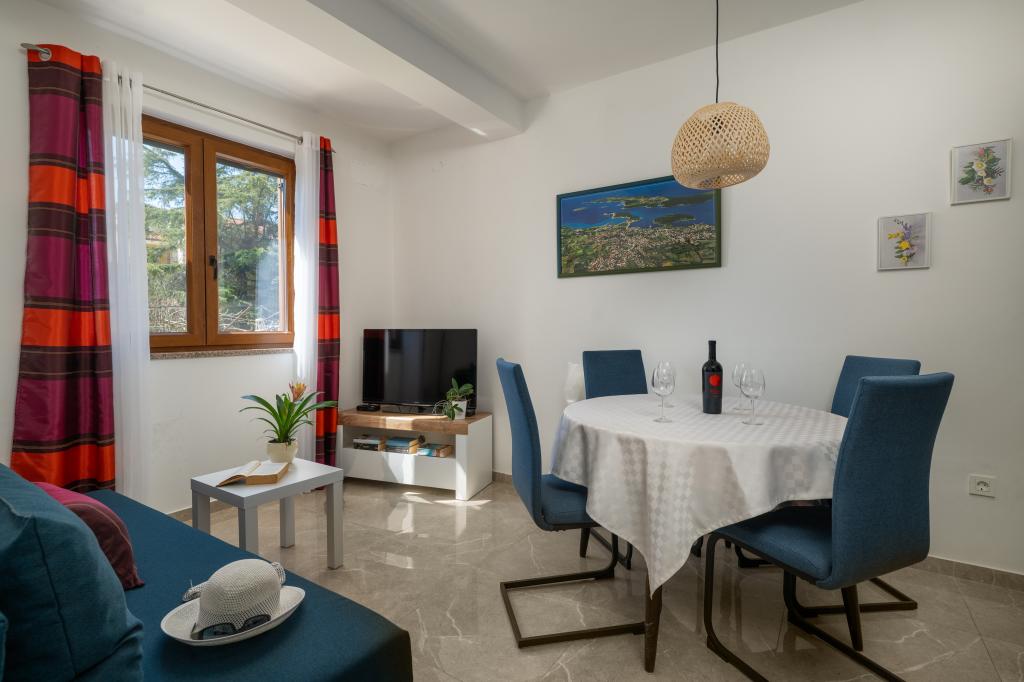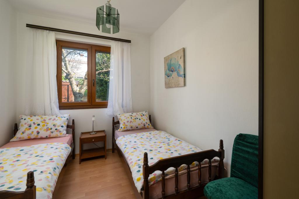 La casa se encuentra en una zona tranquila de Medulin, a 250-300 m de la playa, con un amplio jardín y aparcamiento privado. Se alquilan 4 apartamentos, totalmente equipados y modernos. Dos de ellos se encuentran en la planta baja: el apartamento n.º 1 con 2 dormitorios, cocina, salón, baño y terraza. El apartamento n.º 2 con 1 dormitorio, cocina, baño y terraza con jardín. En la segunda planta, el apartamento n.º 3 con 2 dormitorios, cocina, salón, baño y balcón. El apartamento n.º 4 con 1 dormitorio, cocina, salón, baño y balcón. Todos los apartamentos disponen de aire acondicionado, wifi y televisión por satélite. El precio incluye ropa de cama, toallas, tasa turística y registro. Cada apartamento dispone de plaza de aparcamiento, jardín y barbacoa portátil. El alquiler de lavadora es de 5 euros y la cama supletoria cuesta 10 euros. Aparcamiento y patio con videovigilancia.