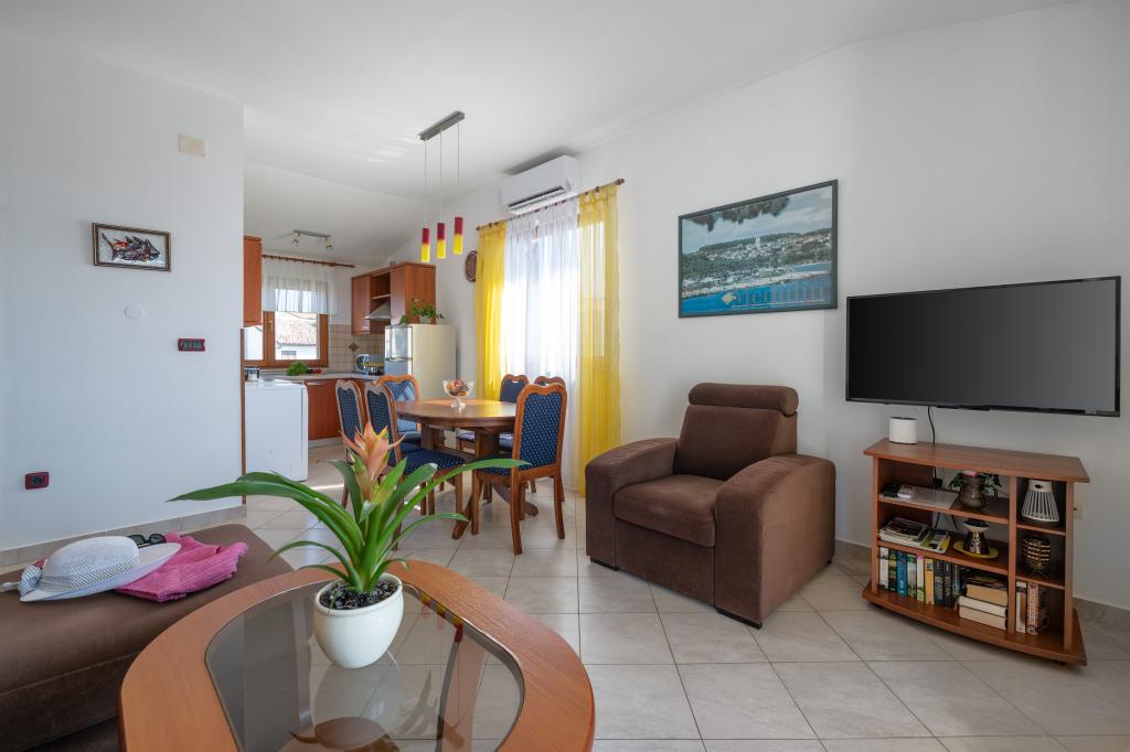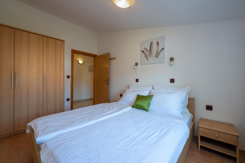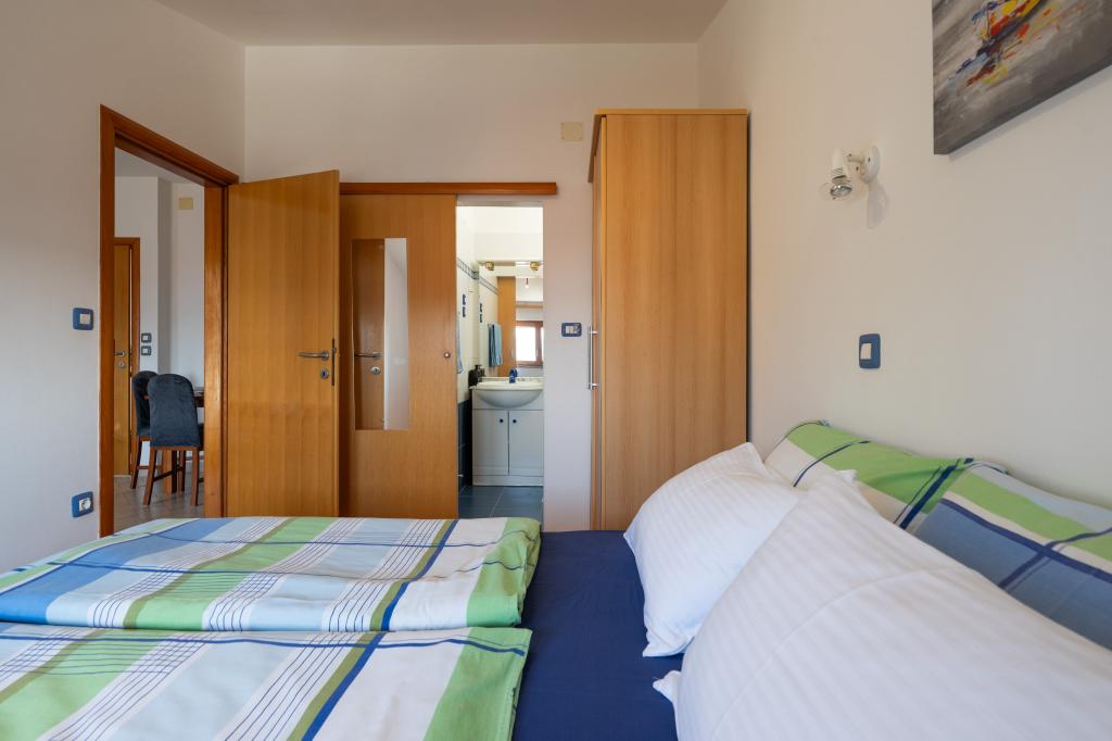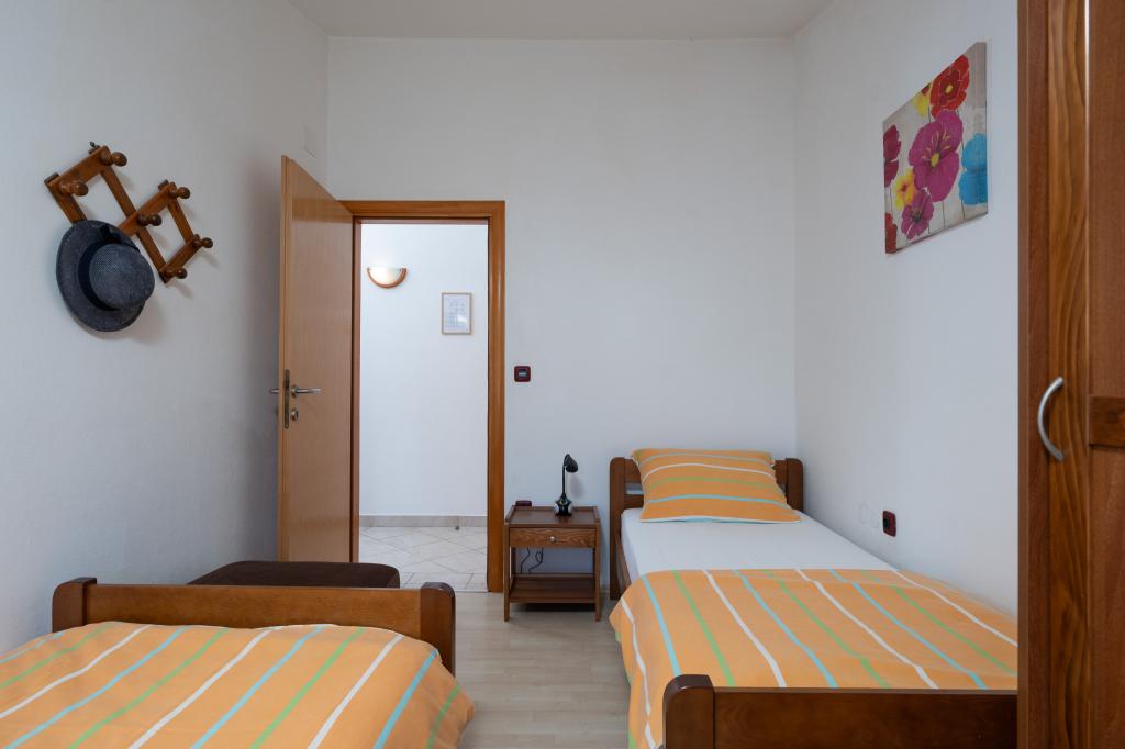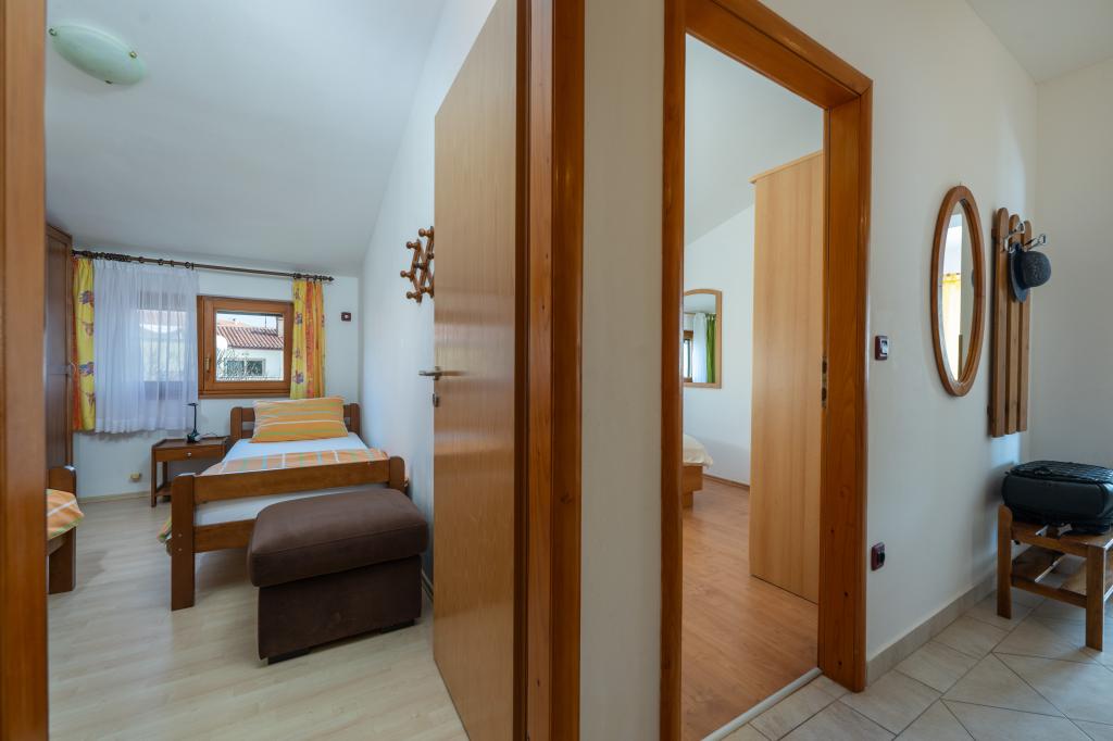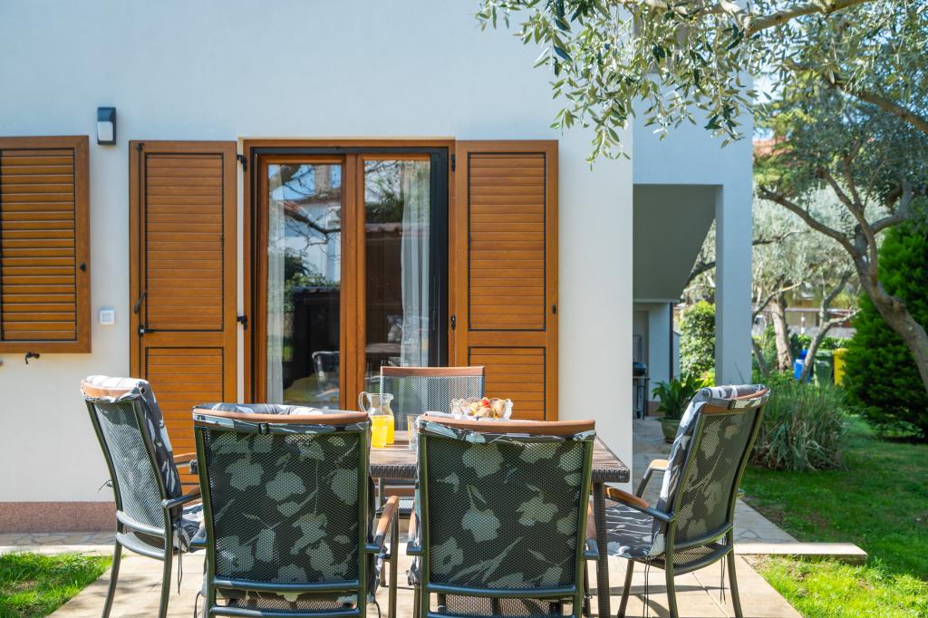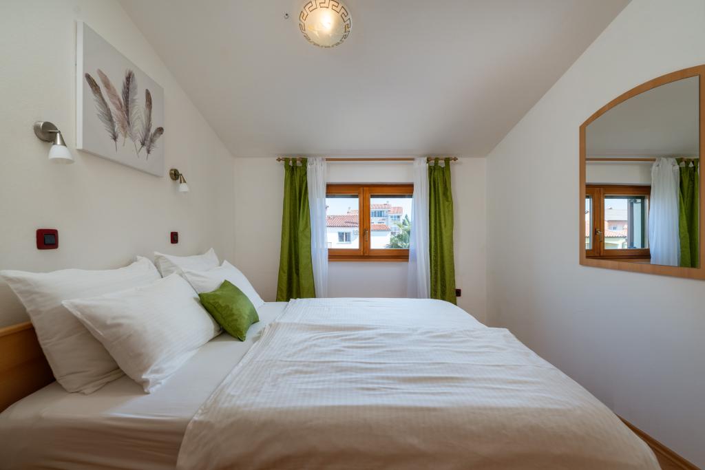 La casa se encuentra en una zona tranquila de Medulin, a 250-300 m de la playa, con un amplio jardín y aparcamiento privado. Se alquilan 4 apartamentos, totalmente equipados y modernos. Dos de ellos se encuentran en la planta baja: el apartamento n.º 1 con 2 dormitorios, cocina, salón, baño y terraza. El apartamento n.º 2 con 1 dormitorio, cocina, baño y terraza con jardín. En la segunda planta, el apartamento n.º 3 con 2 dormitorios, cocina, salón, baño y balcón. El apartamento n.º 4 con 1 dormitorio, cocina, salón, baño y balcón. Todos los apartamentos disponen de aire acondicionado, wifi y televisión por satélite. El precio incluye ropa de cama, toallas, tasa turística y registro. Cada apartamento dispone de plaza de aparcamiento, jardín y barbacoa portátil. El alquiler de lavadora es de 5 euros y la cama supletoria cuesta 10 euros. Aparcamiento y patio con videovigilancia.