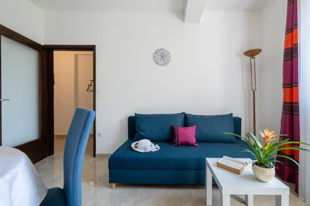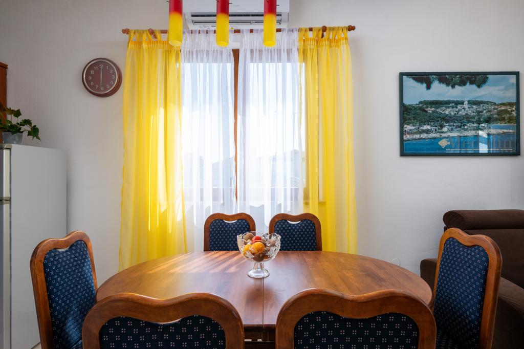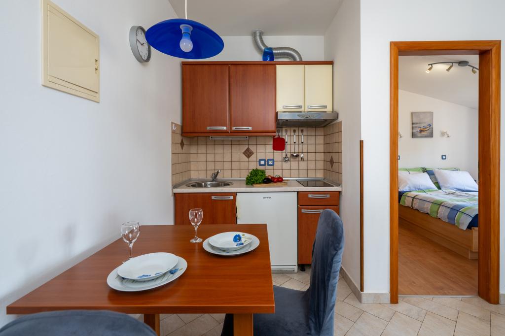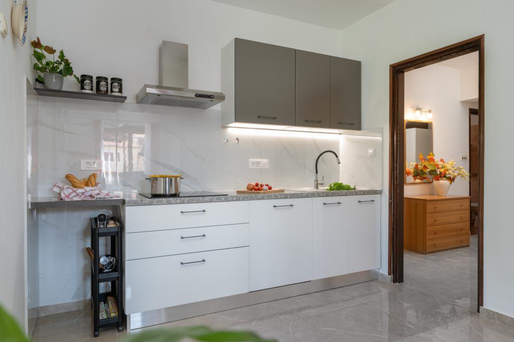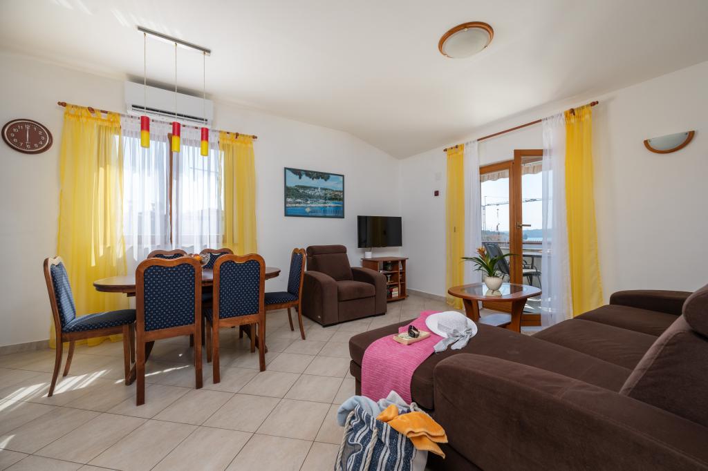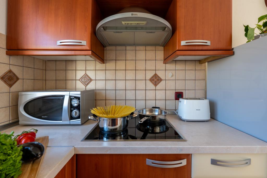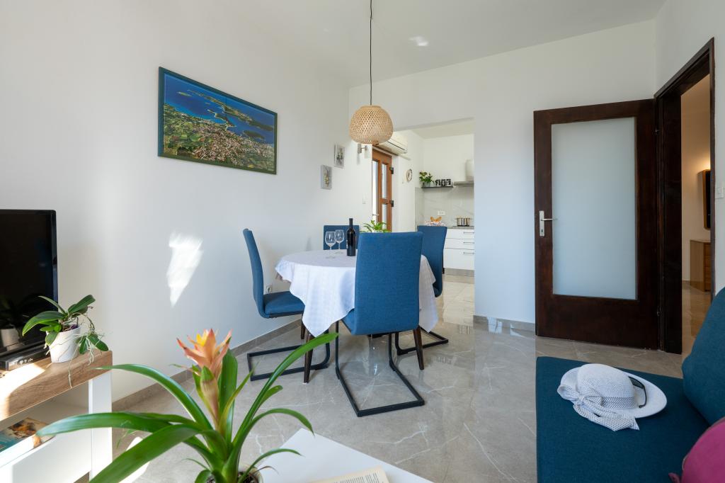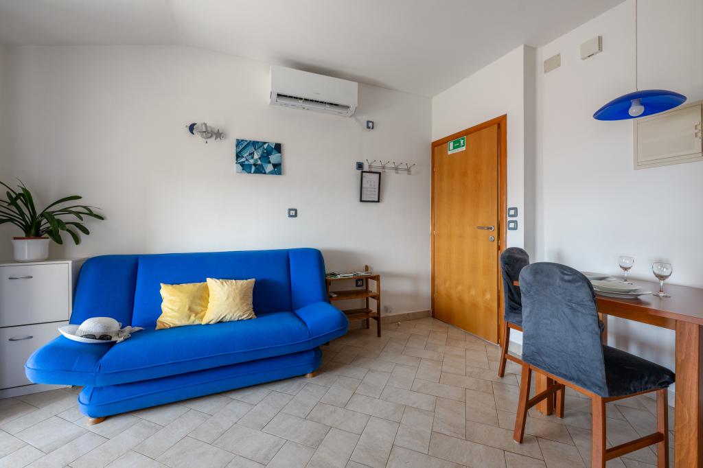 La casa se encuentra en una zona tranquila de Medulin, a 250-300 m de la playa, con un amplio jardín y aparcamiento privado. Se alquilan 4 apartamentos, totalmente equipados y modernos. Dos de ellos se encuentran en la planta baja: el apartamento n.º 1 con 2 dormitorios, cocina, salón, baño y terraza. El apartamento n.º 2 con 1 dormitorio, cocina, baño y terraza con jardín. En la segunda planta, el apartamento n.º 3 con 2 dormitorios, cocina, salón, baño y balcón. El apartamento n.º 4 con 1 dormitorio, cocina, salón, baño y balcón. Todos los apartamentos disponen de aire acondicionado, wifi y televisión por satélite. El precio incluye ropa de cama, toallas, tasa turística y registro. Cada apartamento dispone de plaza de aparcamiento, jardín y barbacoa portátil. El alquiler de lavadora es de 5 euros y la cama supletoria cuesta 10 euros. Aparcamiento y patio con videovigilancia.