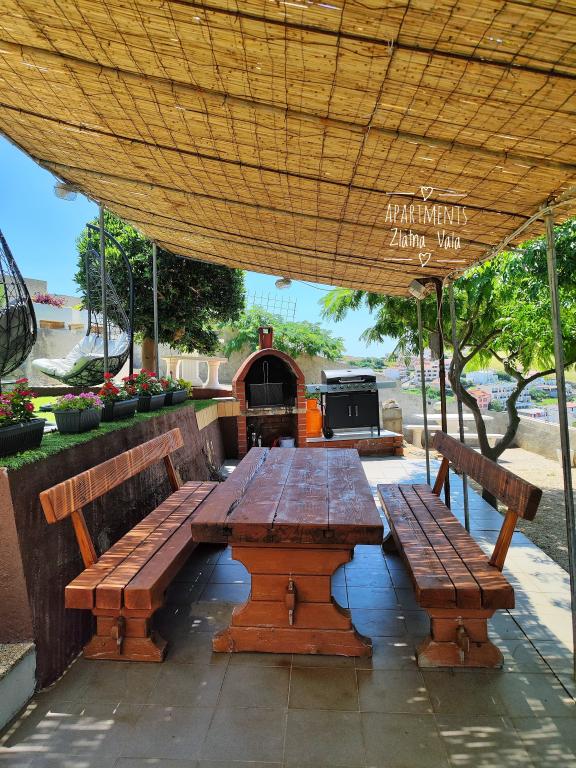 Llevamos varios años de vacaciones en Croacia. Normalmente probamos varios alojamientos diferentes durante las vacaciones, ¡y tenemos que decir que este ha sido nuestro mejor apartamento hasta ahora! El apartamento ofrece mucho espacio para una familia de cuatro; nos sentimos muy cómodos. Está amueblado de forma moderna, da una sensación de lujo, está impecablemente limpio (parecía casi nuevo) y tiene un balcón con una vista impresionante de la playa principal y de toda la bahía de Metajna, donde disfrutamos del atardecer casi todas las noches. El apartamento está excelentemente equipado. Además de electrodomésticos útiles como lavavajillas, placa de inducción, aire acondicionado, wifi (con buena señal), etc., también hay una cafetera y una aspiradora de mano, algo que agradecerán especialmente quienes viajen con niños. Recibimos pastillas para lavavajillas y cápsulas de café ilimitadas. Justo al lado del edificio, se pueden usar dos tipos de parrillas y relajarse en las hamacas de la terraza. Durante nuestra estancia, los anfitriones nos prestaron amablemente sus tablas de paddle surf, lo que nos brindó una fantástica oportunidad para probar el paddle surf por primera vez. Los apartamentos también ofrecen un amplio aparcamiento justo encima del edificio. Todos estos detalles contribuyen a la comodidad general y a la agradable experiencia de alojarse aquí. El día de nuestra llegada, encontramos en la mesa una bolsa de regalo con mermeladas caseras preparadas por los propios anfitriones. Fue una grata sorpresa. Los anfitriones fueron muy amables y comunicativos desde el primer momento. Nos ayudaron con todo lo que necesitábamos sin ningún problema y siempre estuvieron dispuestos a complacernos. Durante nuestra estancia, la anfitriona nos sorprendió dos veces con un plato lleno de panqueques recién hechos y un delicioso pastel. La playa más cercana está a solo dos minutos a pie por las calles de Metajna, la playa principal. Justo detrás de una pequeña colina, se encuentra la hermosa playa de Ručica. Recomiendo alquilar un bote a pedales allí y visitar la cercana playa de Beritnica, con impresionantes formaciones rocosas de arenisca. Al atardecer, disfrutamos paseando por el sendero costero "Vida en Marte", que comienza al final de la playa de Metajna y da la vuelta hasta la playa de Ručica. Como mencioné al principio de esta reseña, este apartamento es, sin duda, el mejor que hemos alquilado en Croacia. No